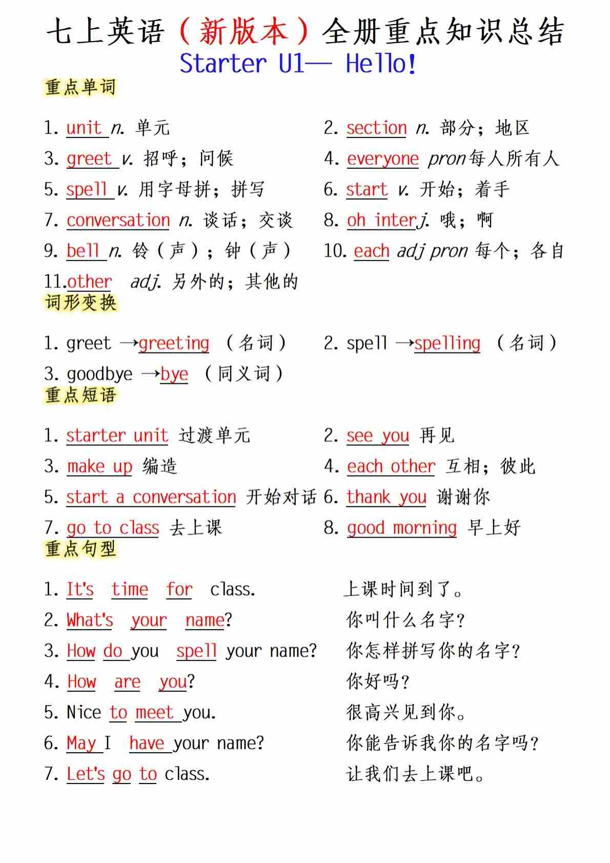 【1背诵】七上英语人教版全册重点知识总结