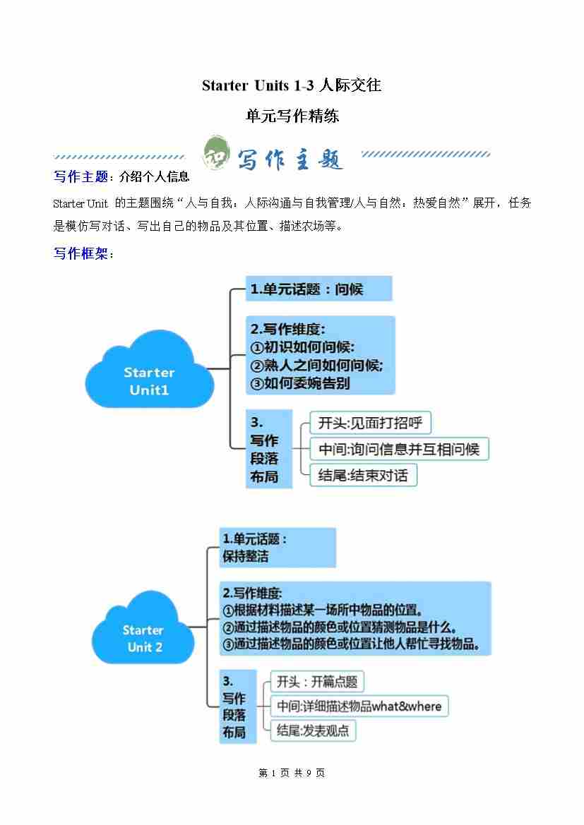 Starter Unit 1-3 单元写作指导与演练(解析版)
