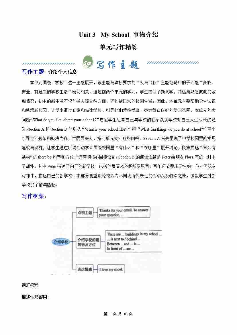 Unit 3 My School 事物介绍(单元写作精练)(原卷版)