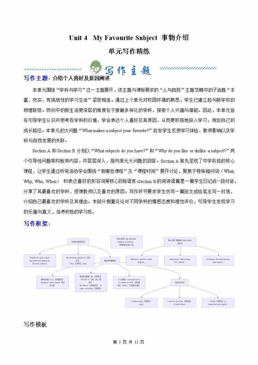 Unit 4 My Favourite Subject 介绍个人喜好及原因阐述(单元写作精练)(原卷版)
