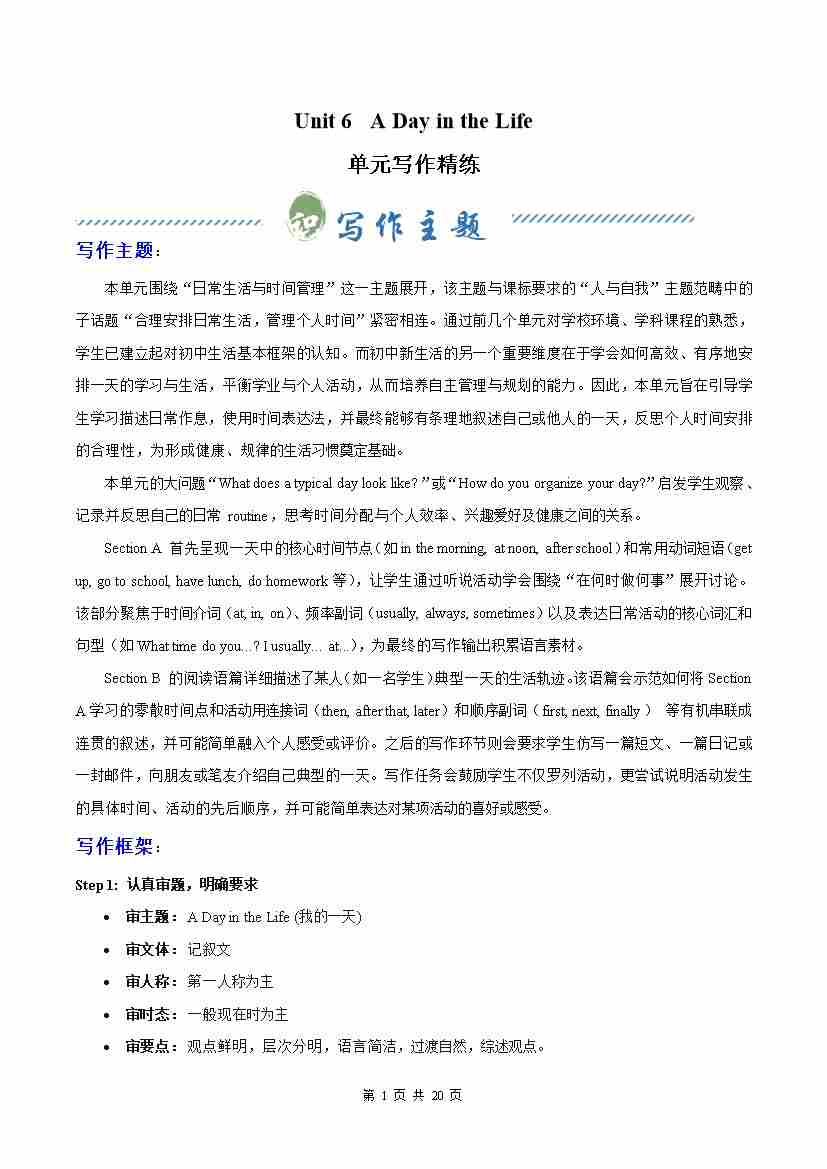 Unit 6 A Day in the Life (单元写作精练)(原卷版)