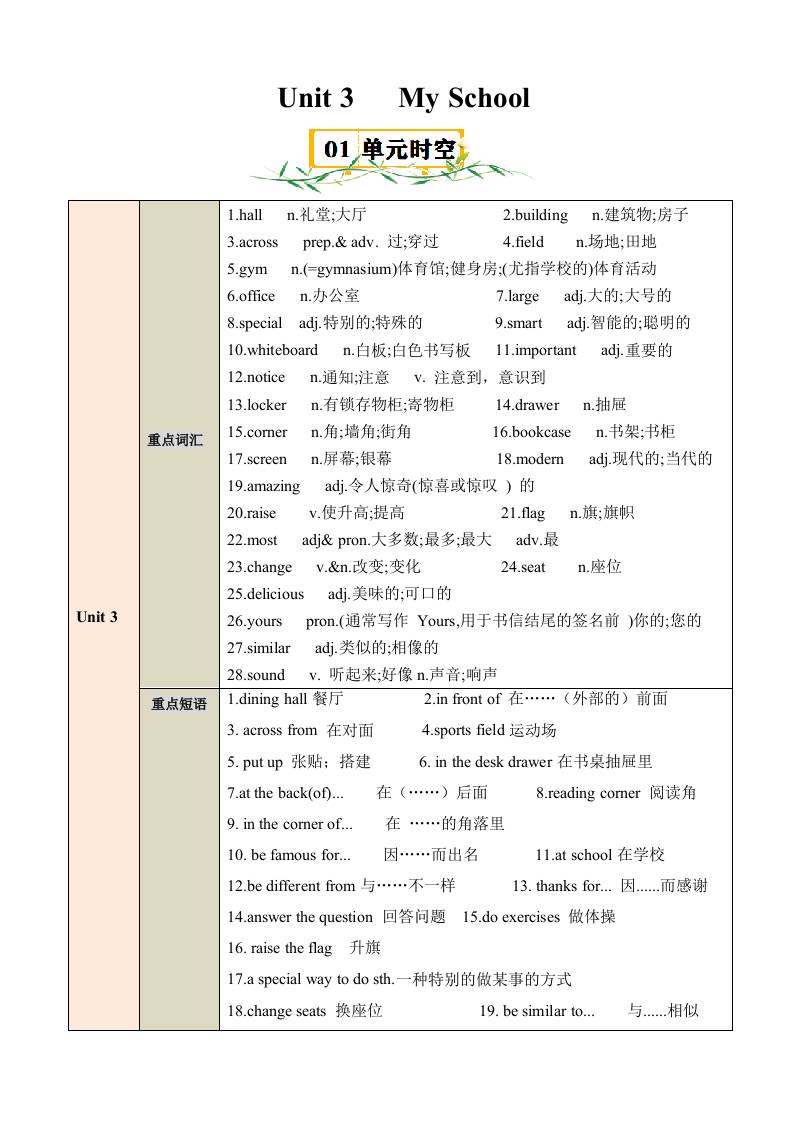 Unit 3 My School 【速记清单】(解析版)