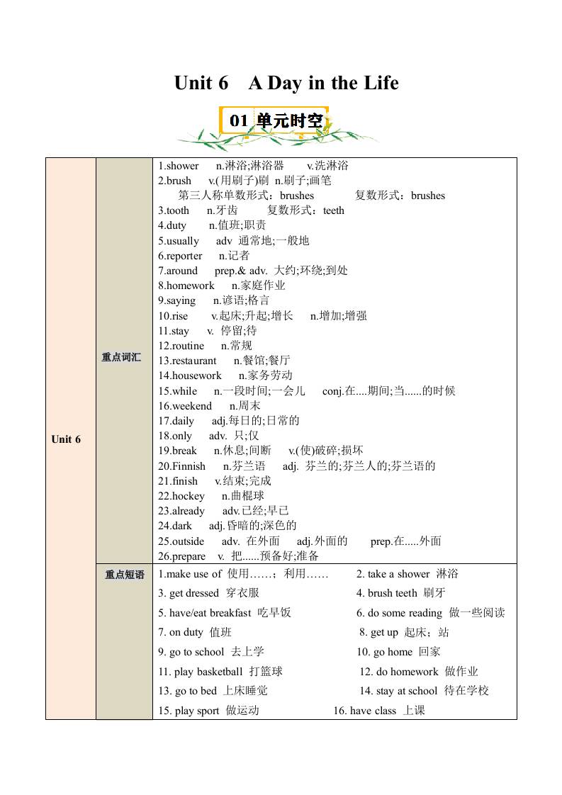 Unit 6 A Day in the Life 【速记清单】(解析版)