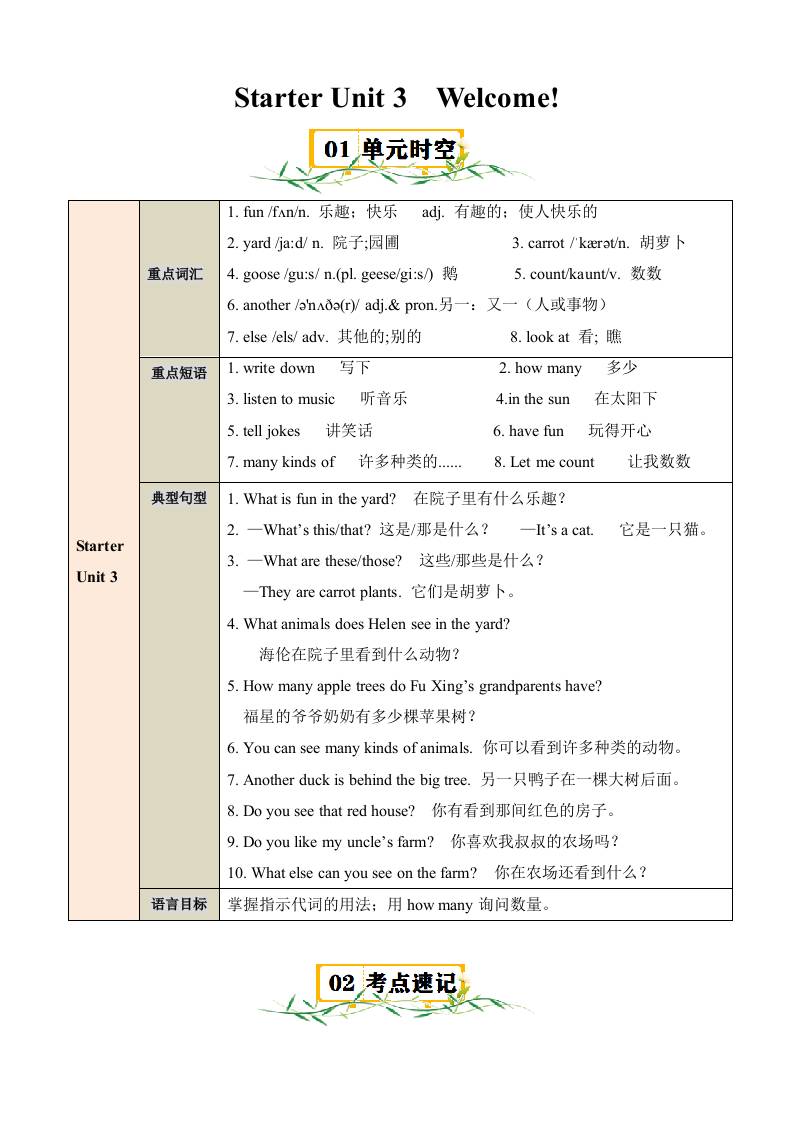 Starter Unit 3 Welcome!【速记清单】(原卷版)