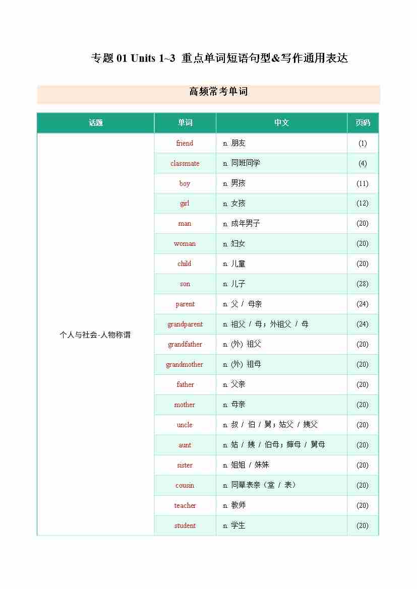 专题01 Units 1~3 重点单词短语句型&写作通用表达(期中知识清单)(背诵版)(1)