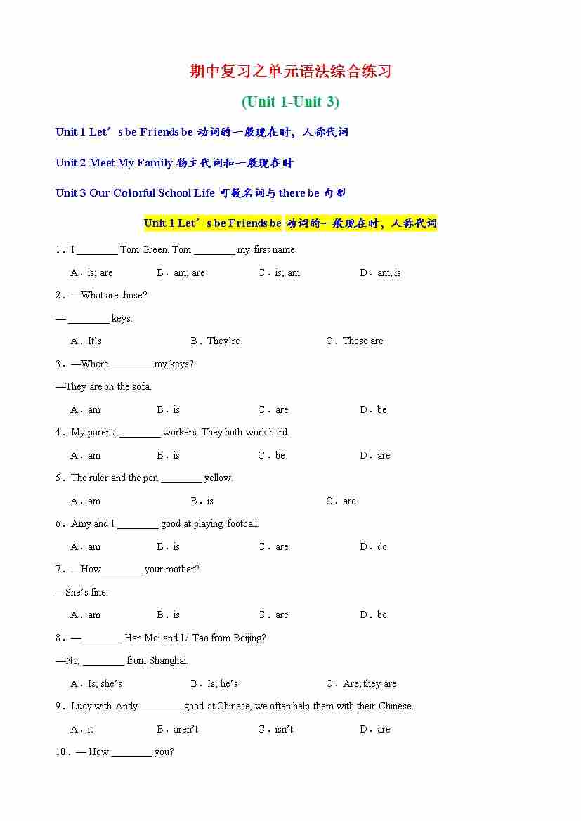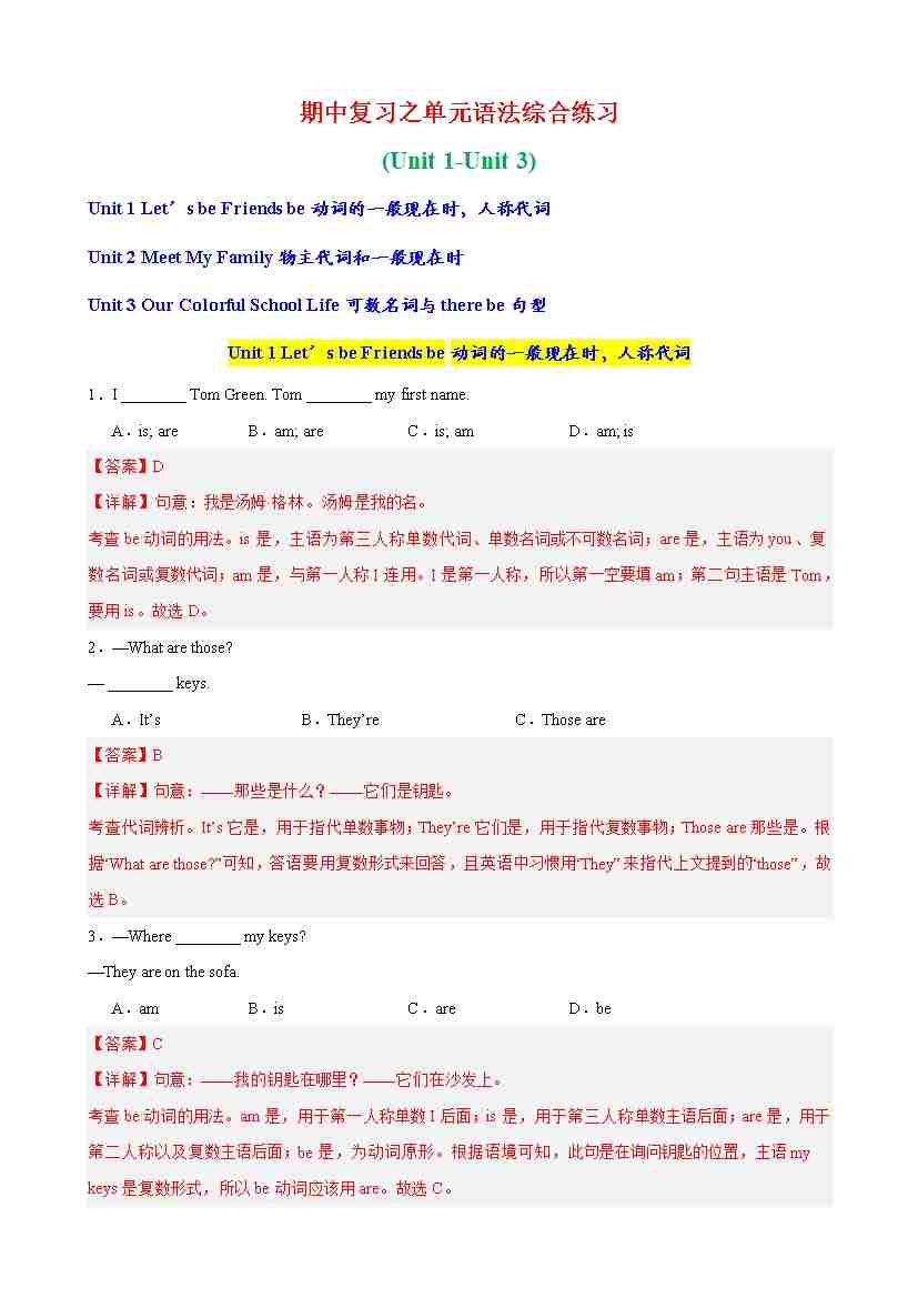 Unit 1 Let's Be Friends! 重点语法:人称代词和be动词的一般现在时(三大题型,50题)精讲练(解析版)