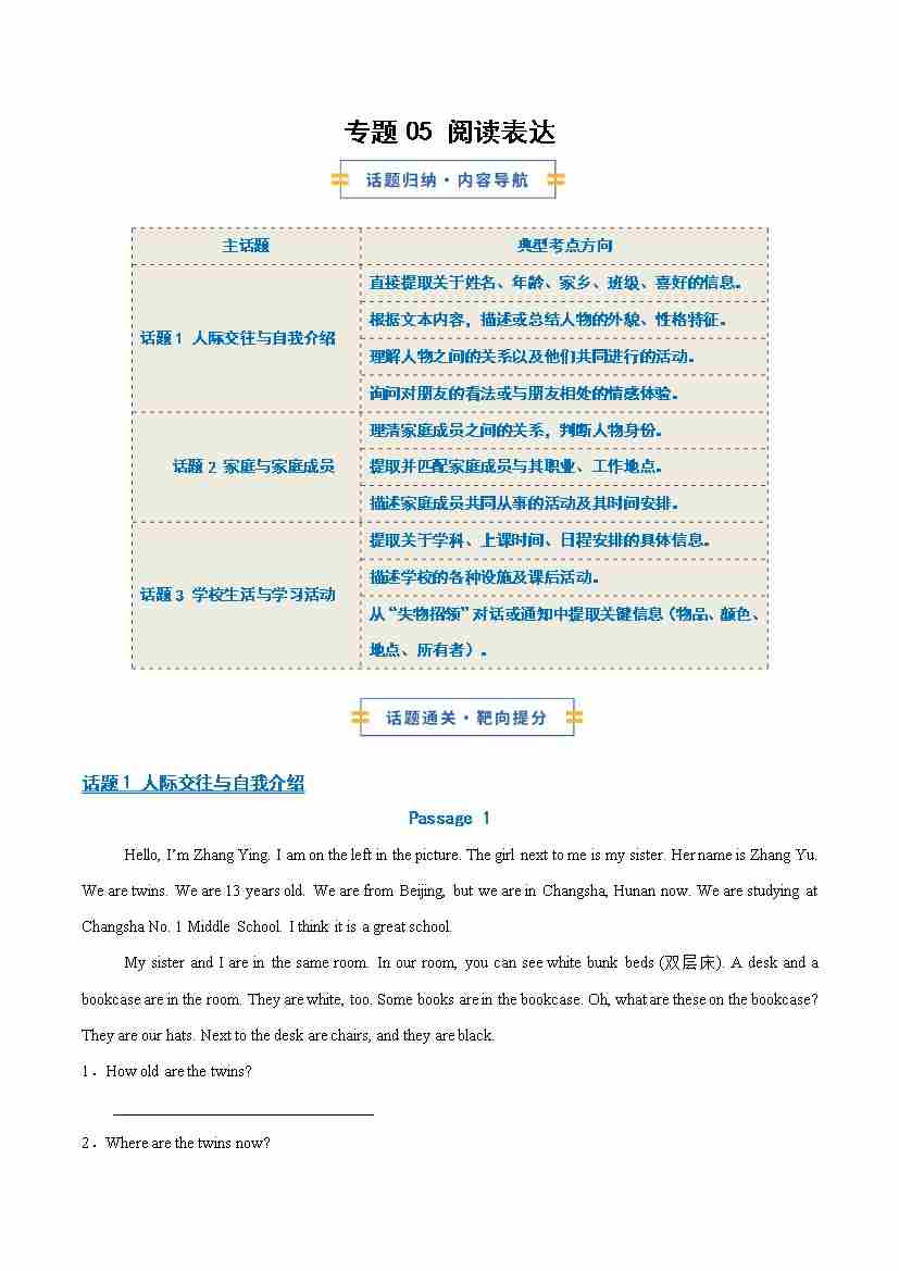 考前押题05 阅读表达(期中专项训练)(学生版)