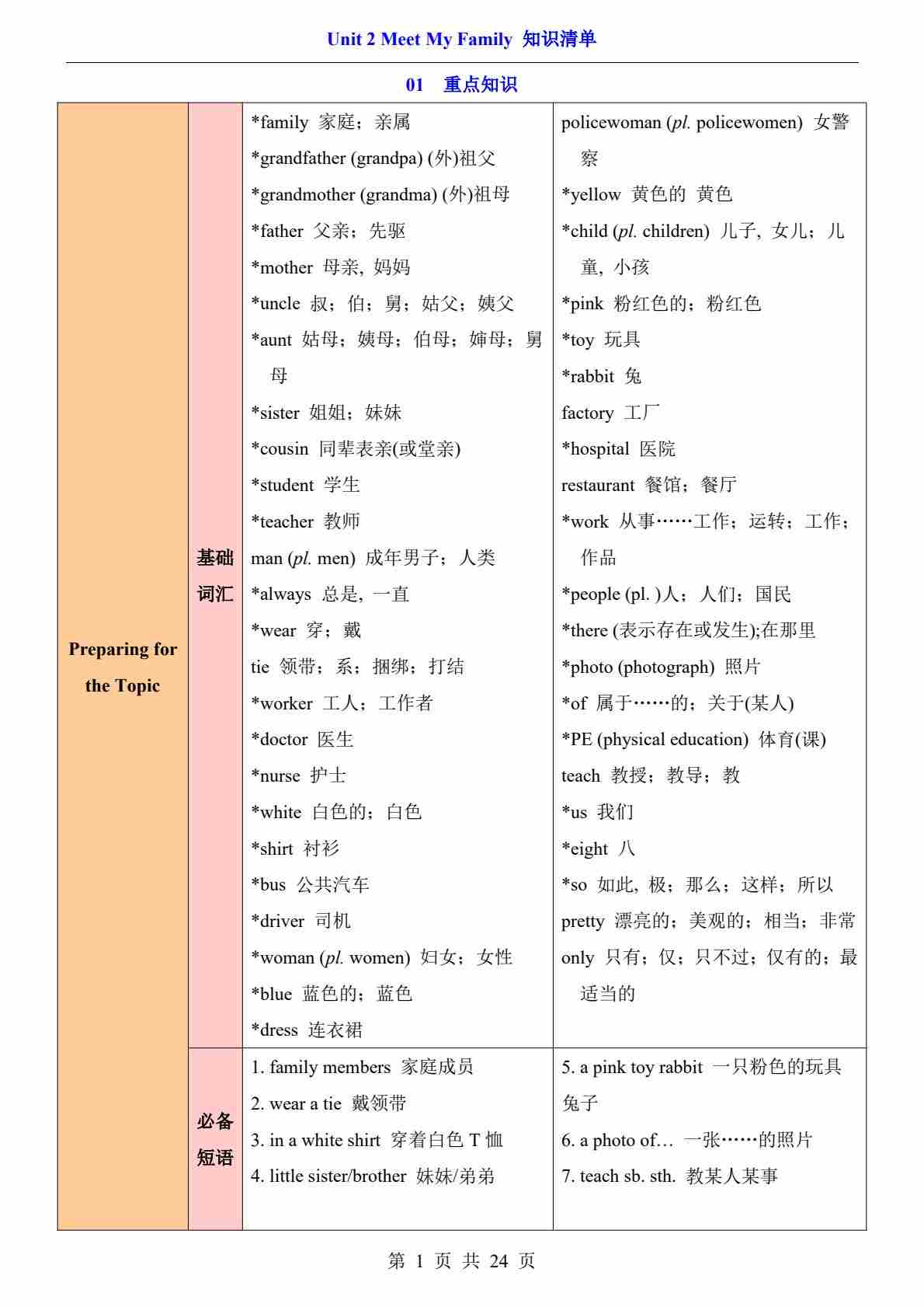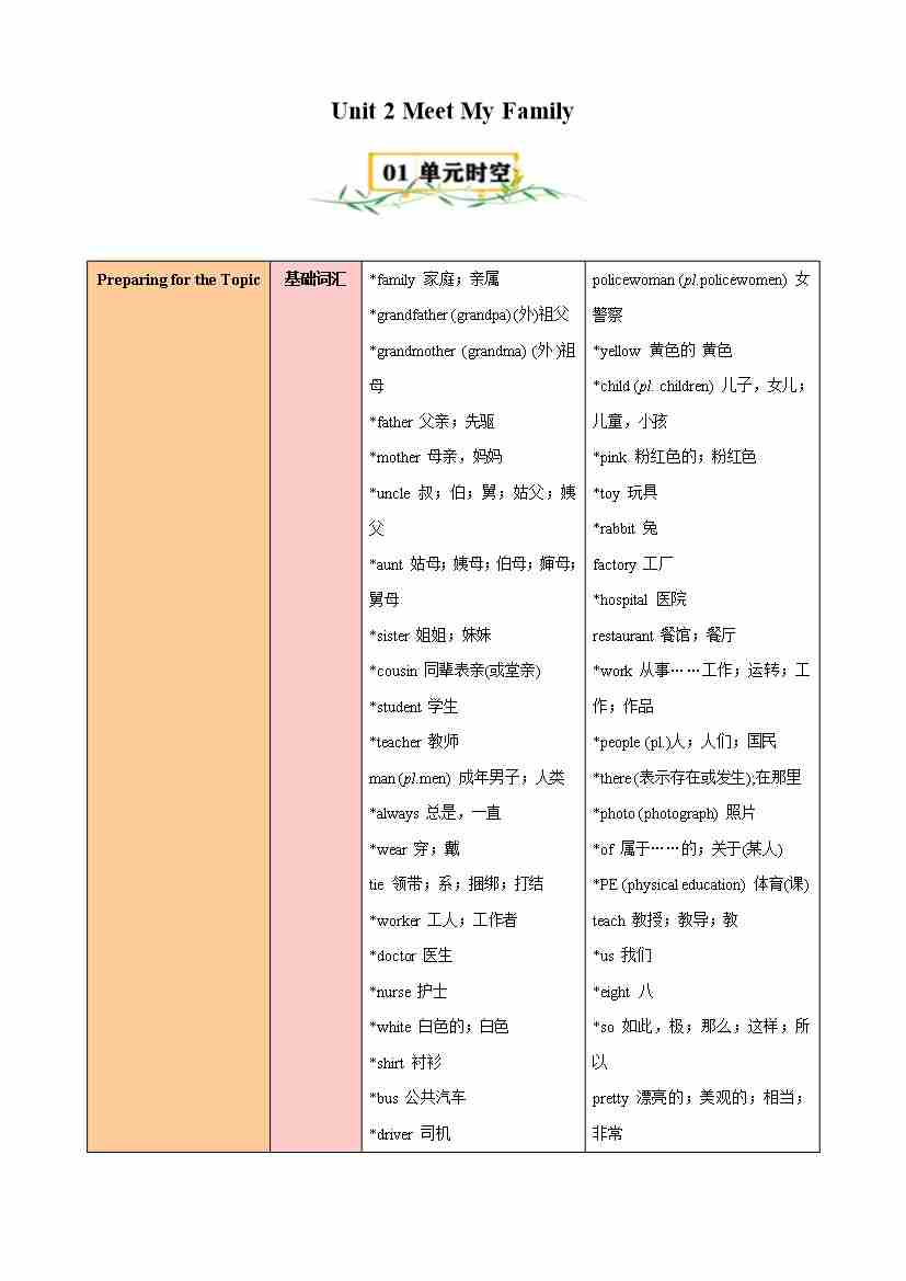 Unit 2 Meet My Family(知识清单)(答案版)