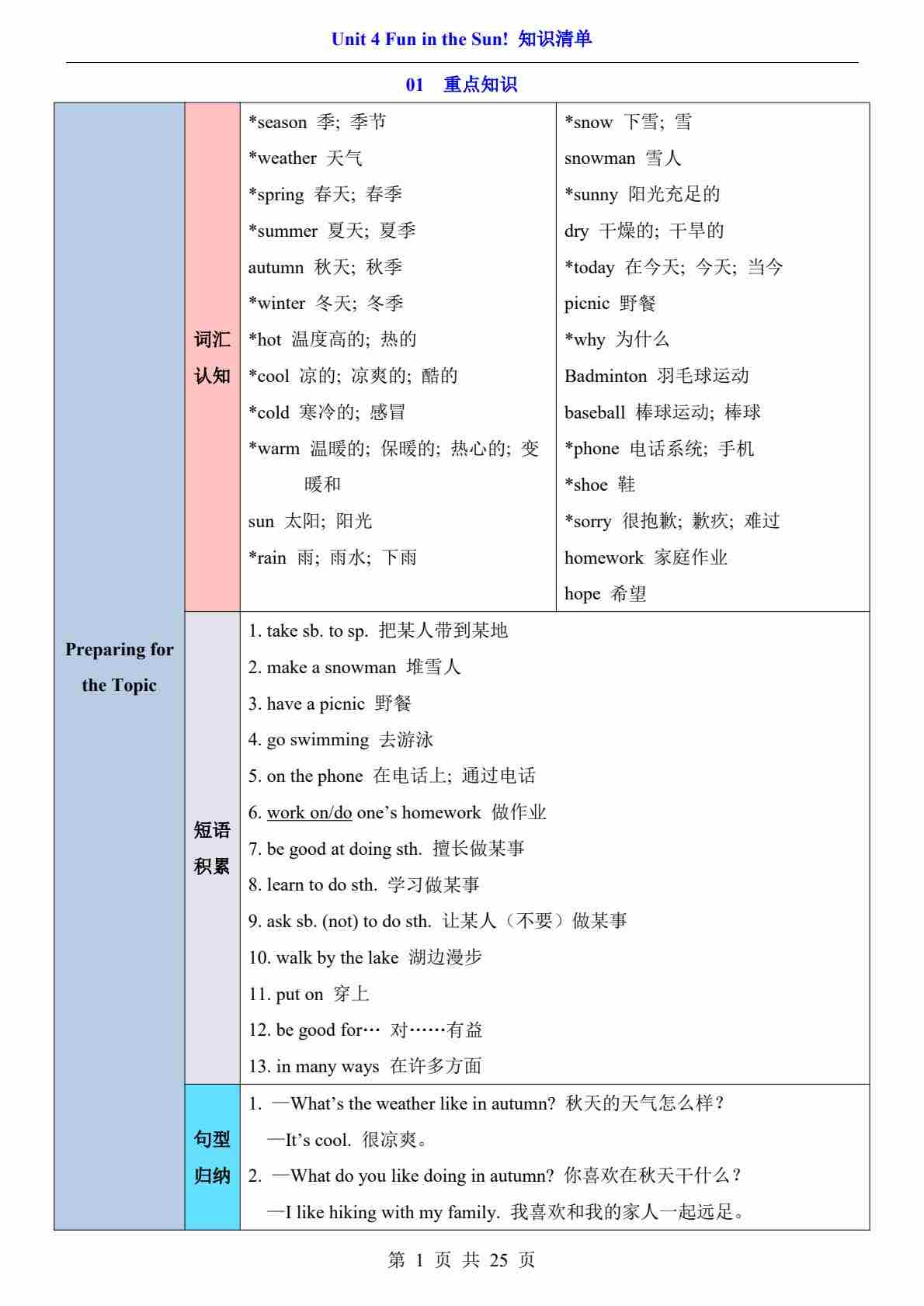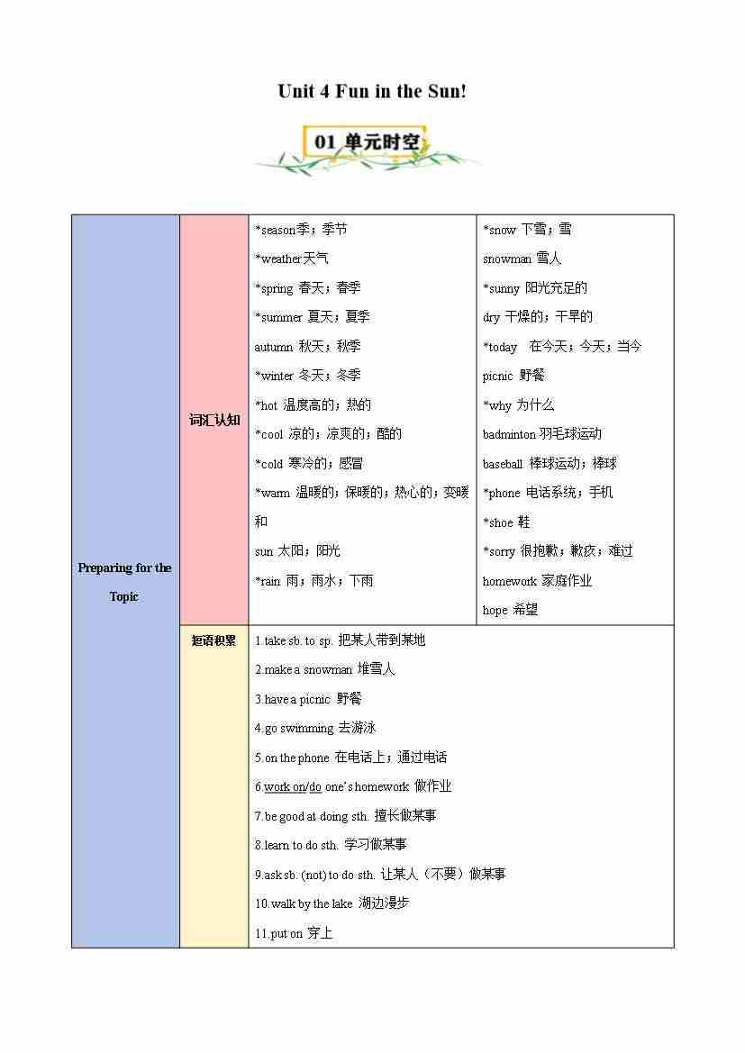 Unit 4 Fun in the Sun!(知识清单)(答案版)