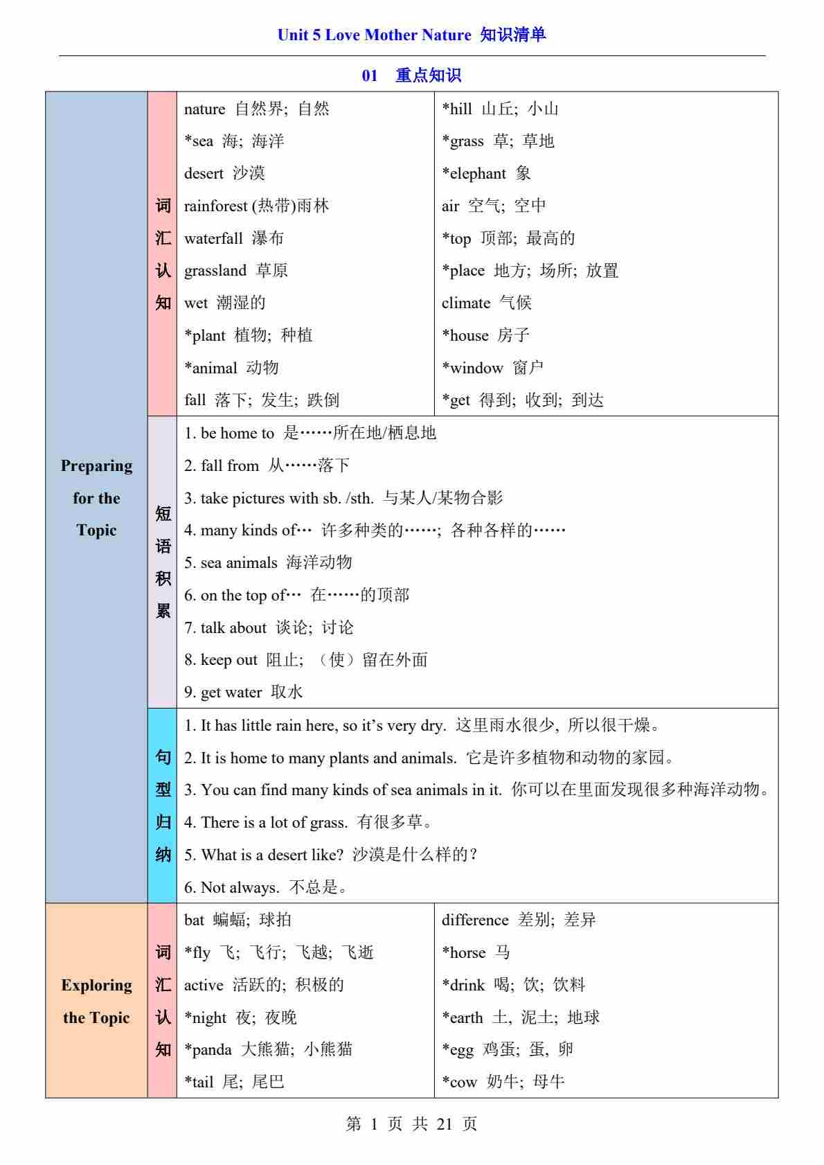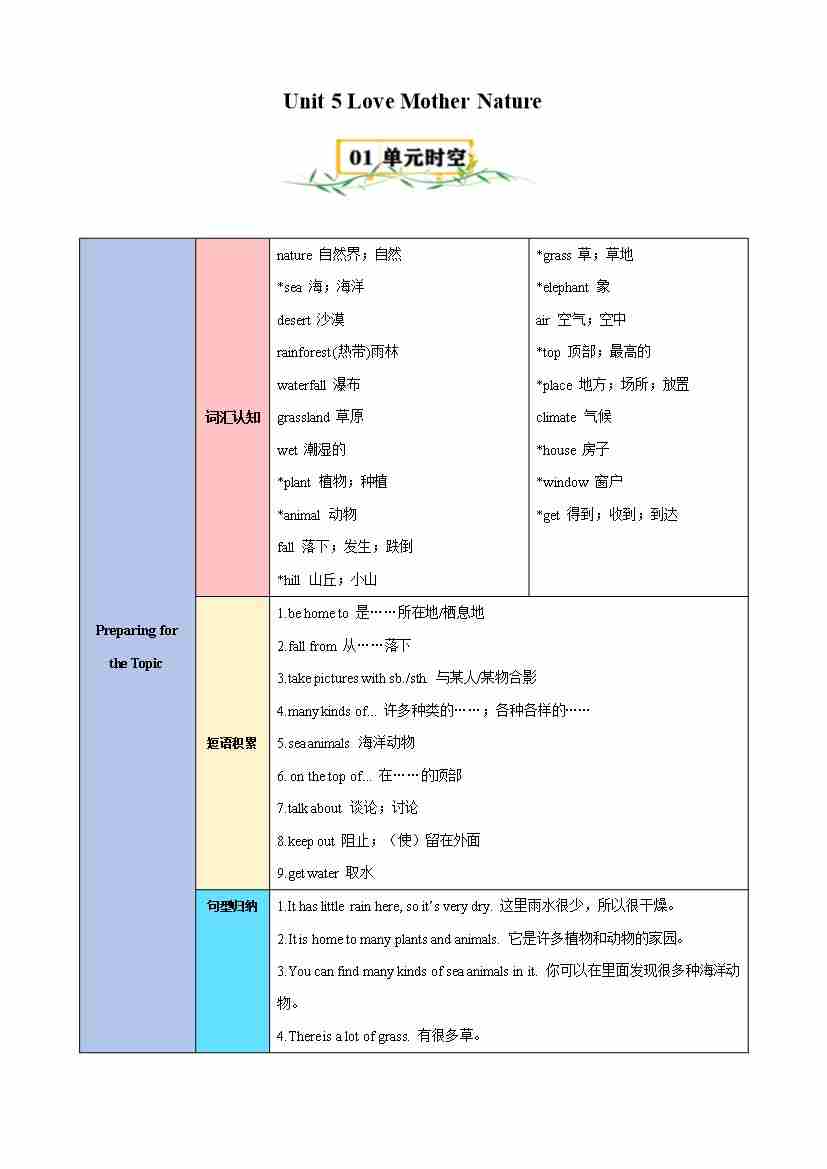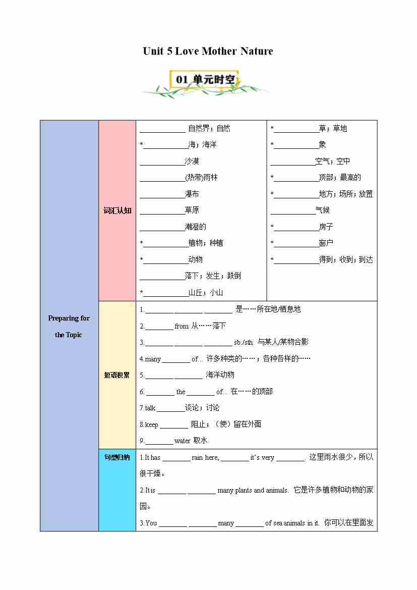 Unit 5 Love Mother Nature(知识清单)(挖空版)