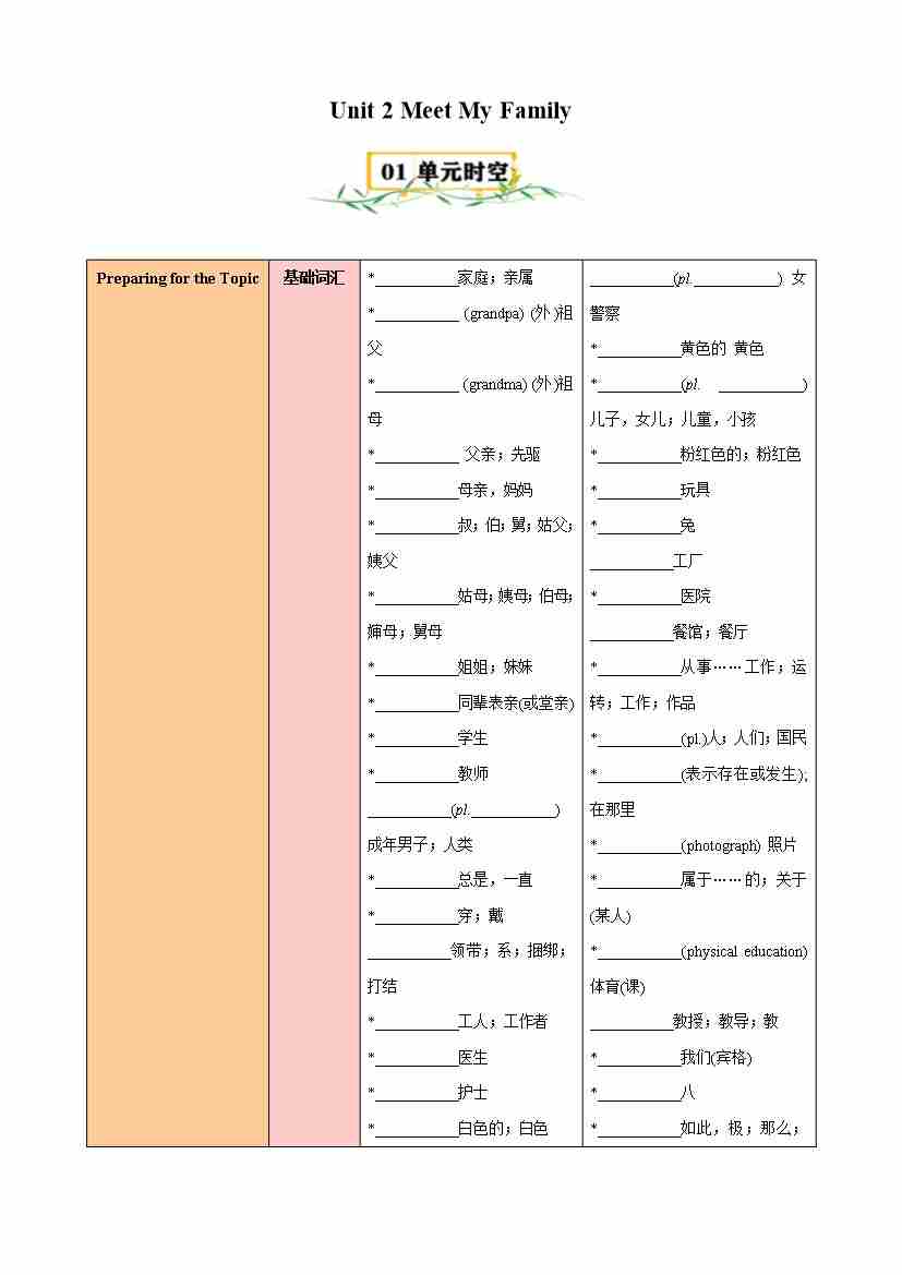 Unit 2 Meet My Family(知识清单)(挖空版)
