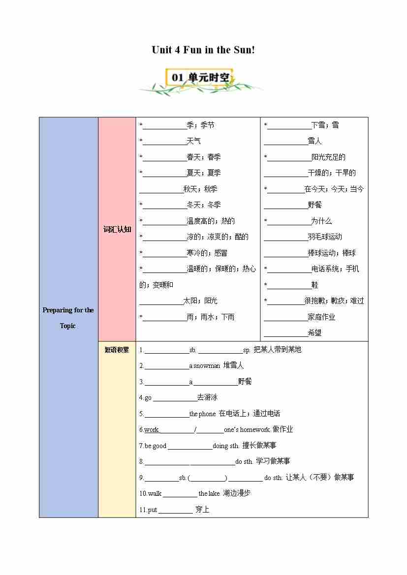 Unit 4 Fun in the Sun!(知识清单)(挖空版)