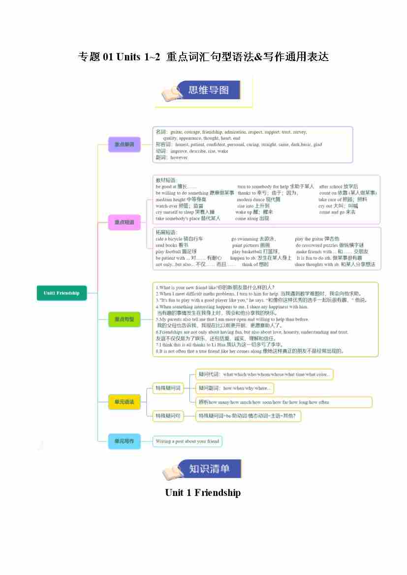专题01 Units 1~2 重点词汇句型语法&写作通用表达(期末复习知识清单)(背诵版)