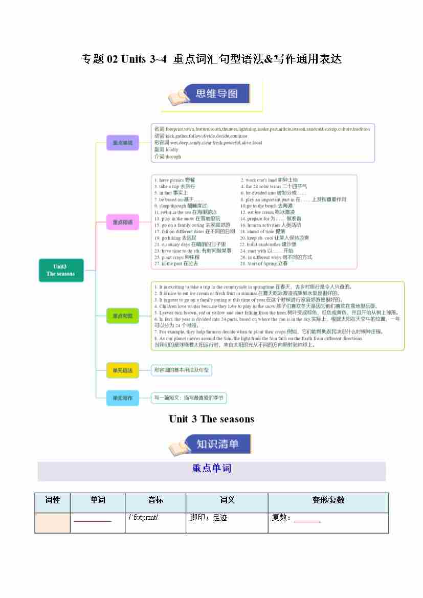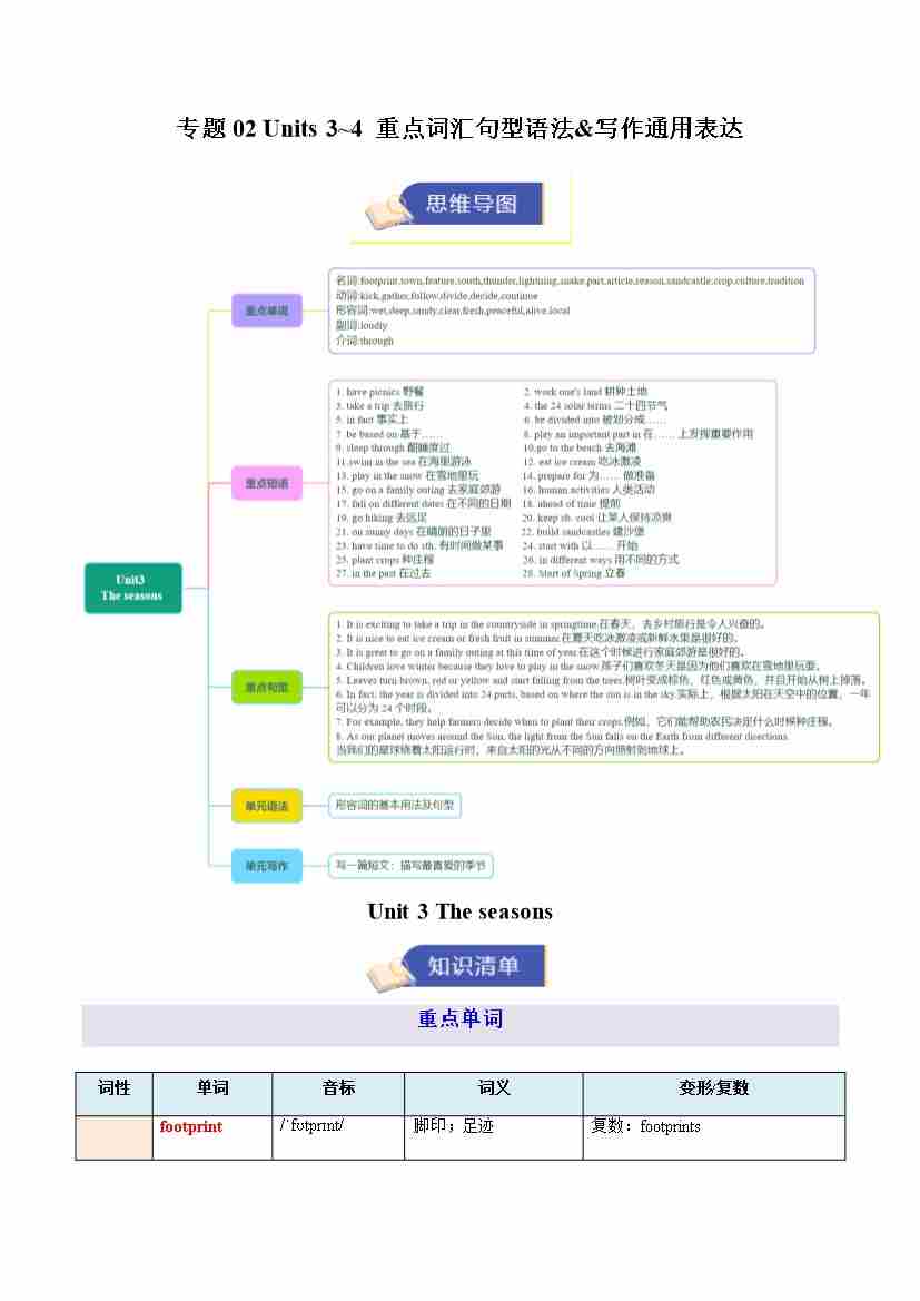 专题02 Units 3~4 重点词汇句型语法&写作通用表达(期末复习知识清单)(背诵版)