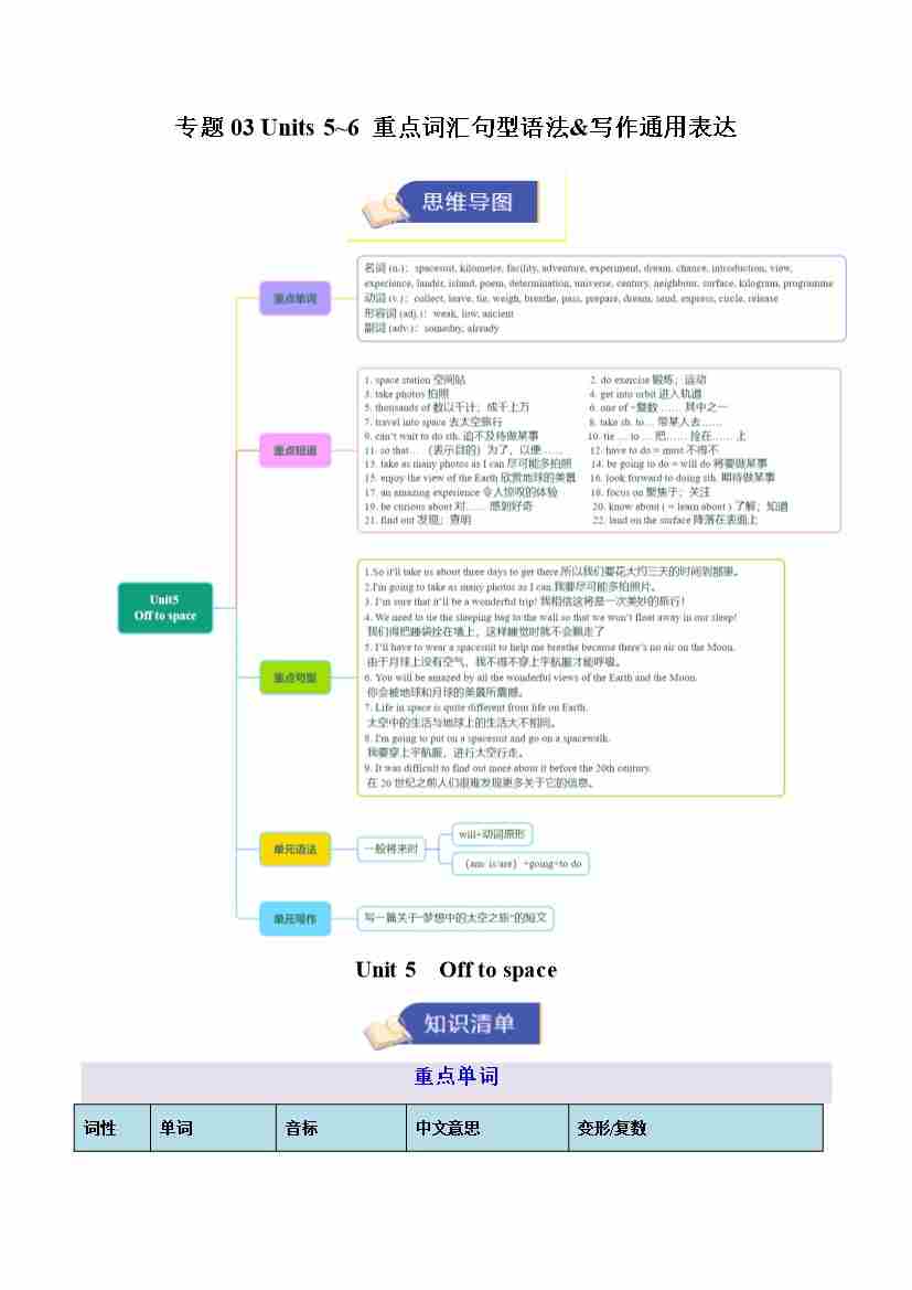 专题03 Units 5~6 重点词汇句型语法&写作通用表达(期末复习知识清单)(背诵版)
