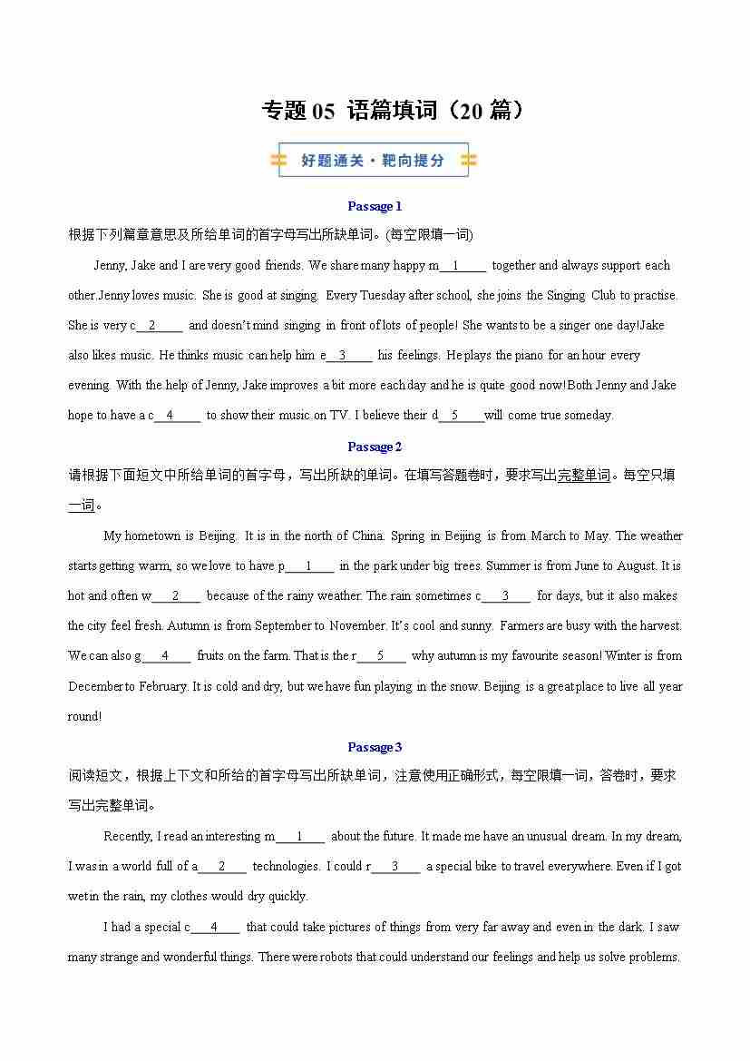 考前押题05 语篇填词(期末复习专项训练)(原卷版)