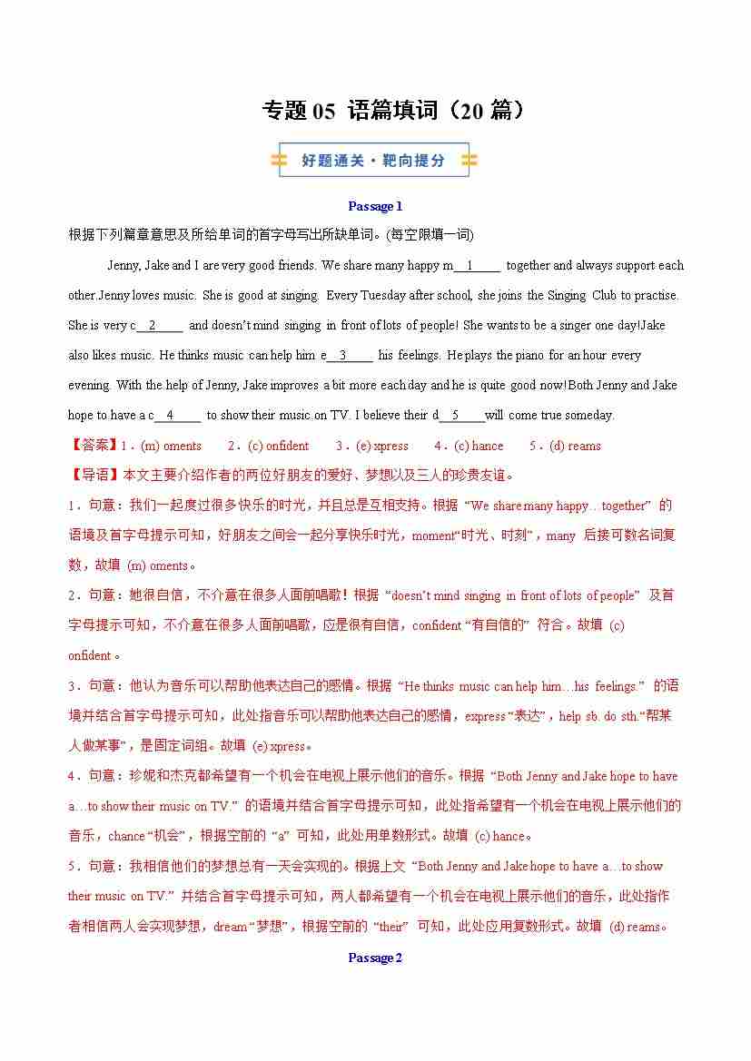 考前押题05 语篇填词(期末复习专项训练)(解析版)
