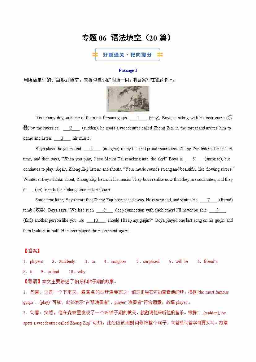 考前押题06 语法填空(期末复习专项训练)(解析版)
