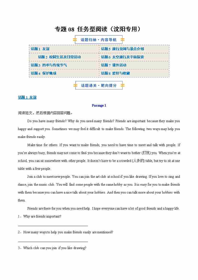 考前押题08 任务型阅读(沈阳专用)(期末复习专项训练)(原卷版)