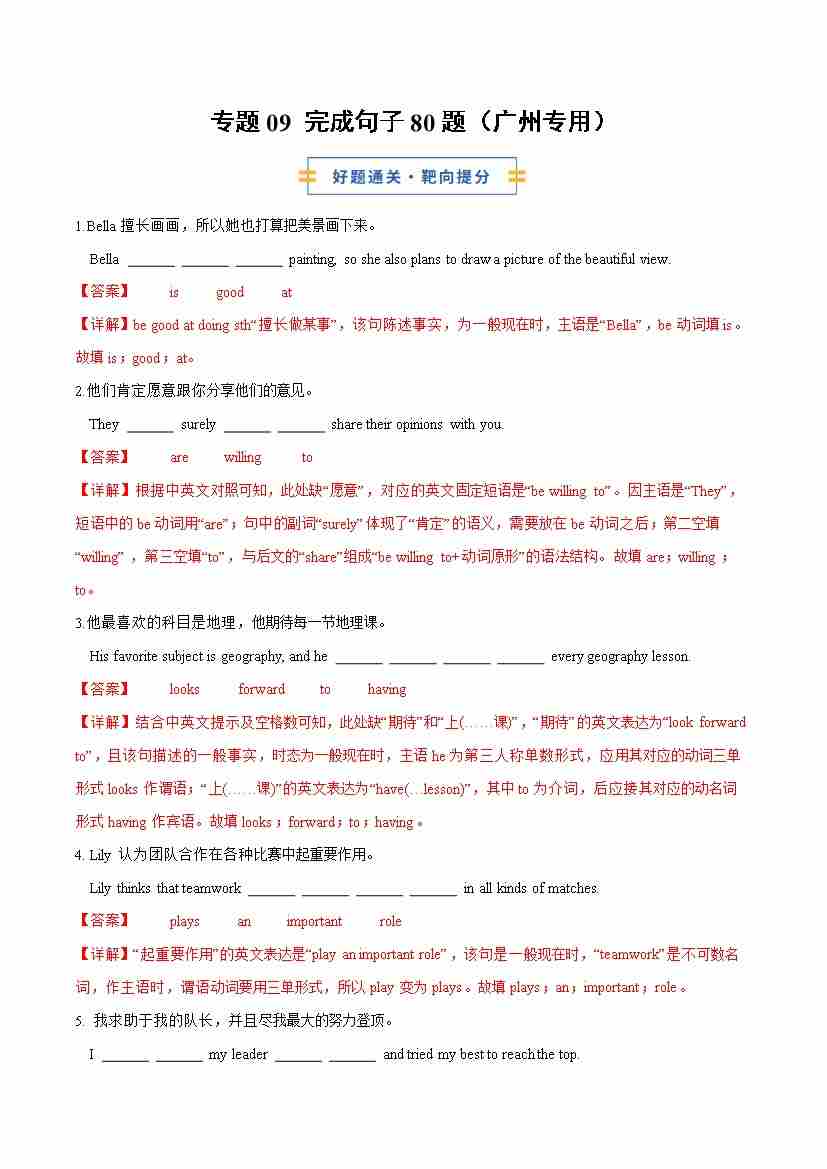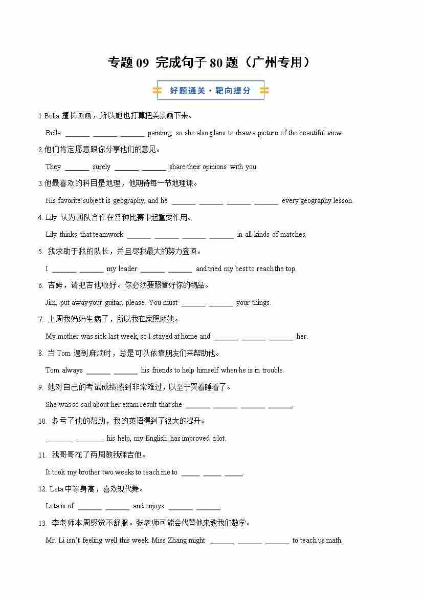 考前押题09 完成句子(广州专用)(期末复习专项训练)(解析版)