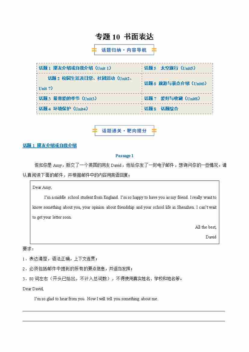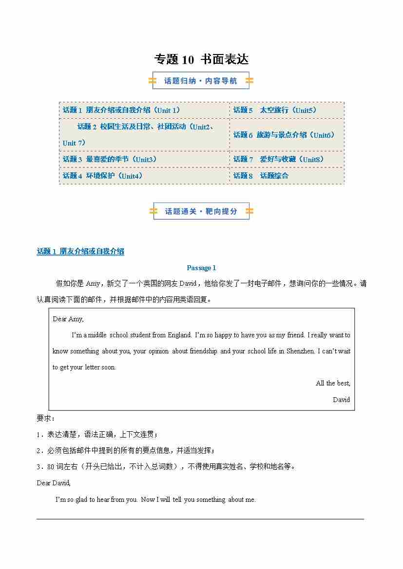 考前押题10 书面表达(期末复习专项训练)(解析版)