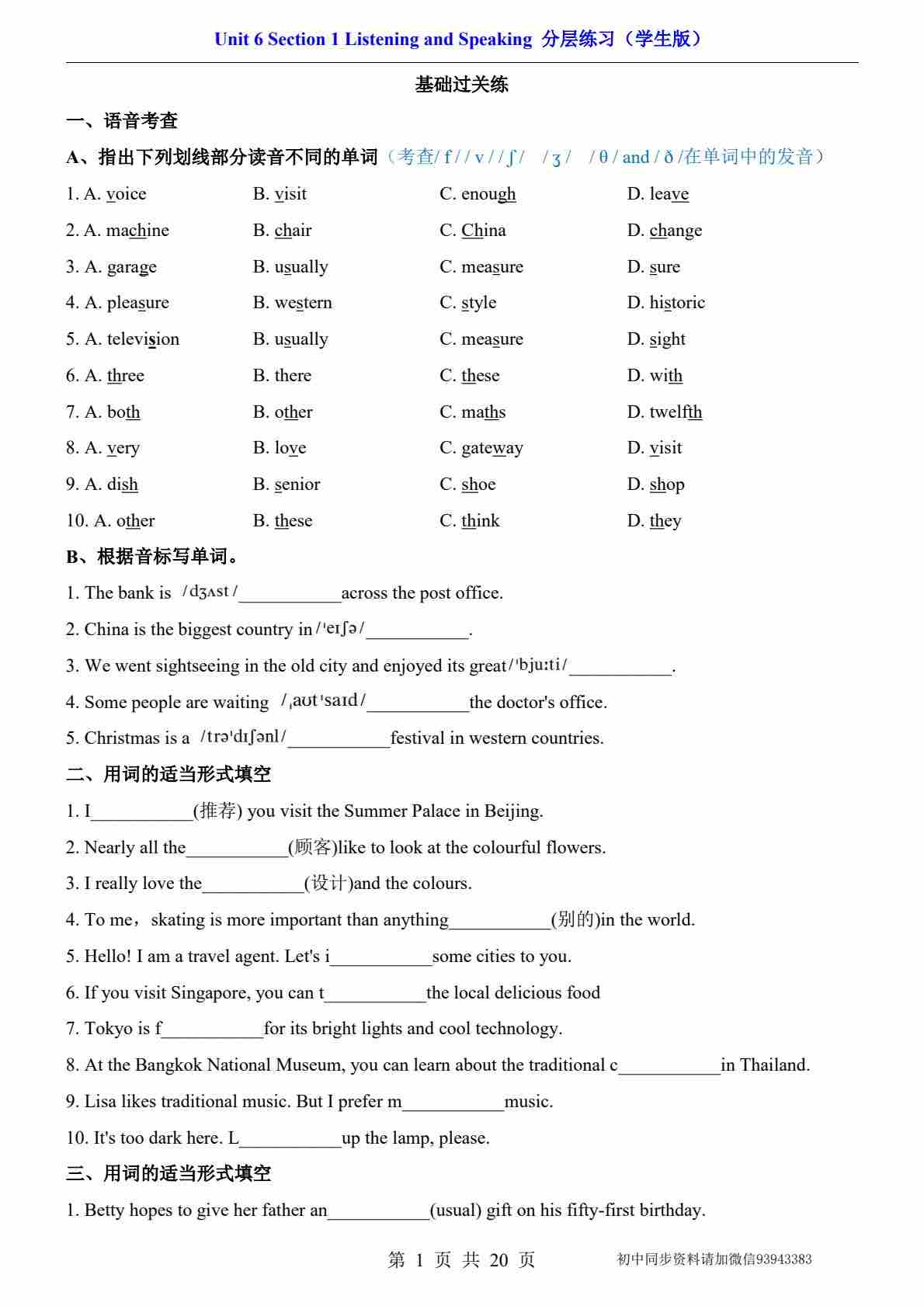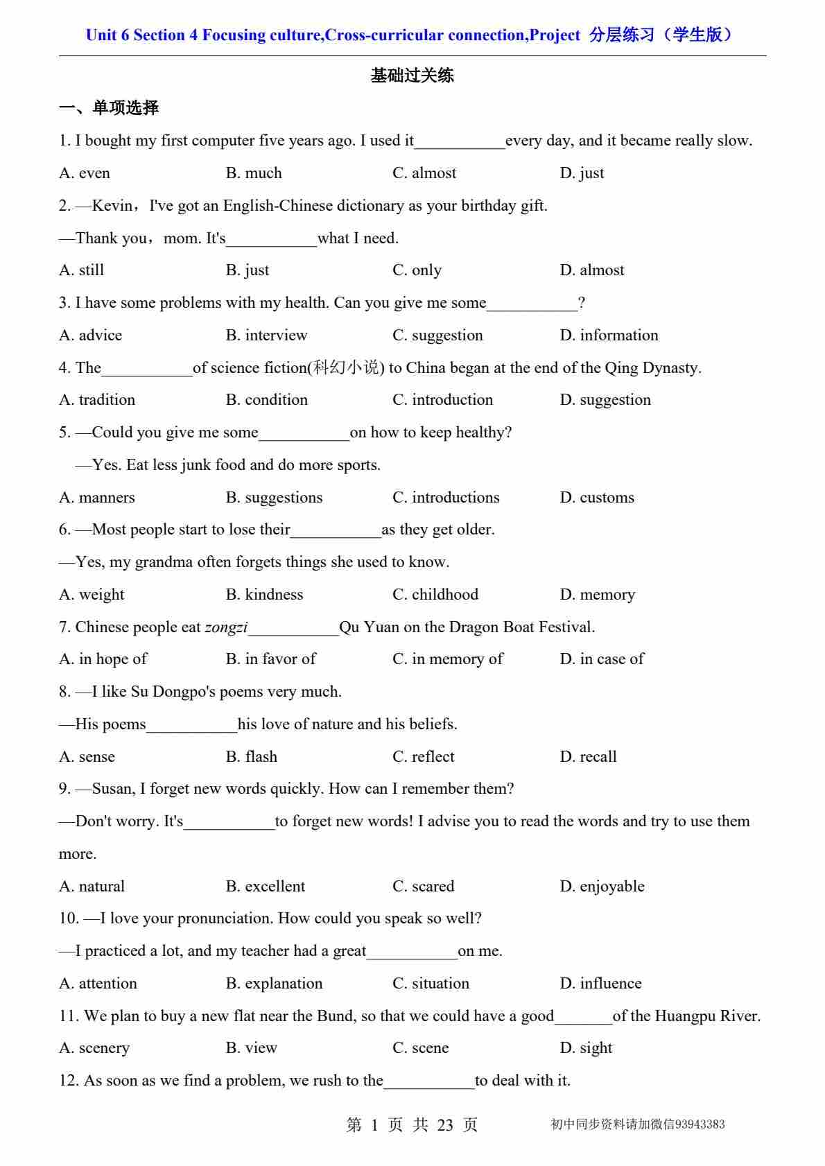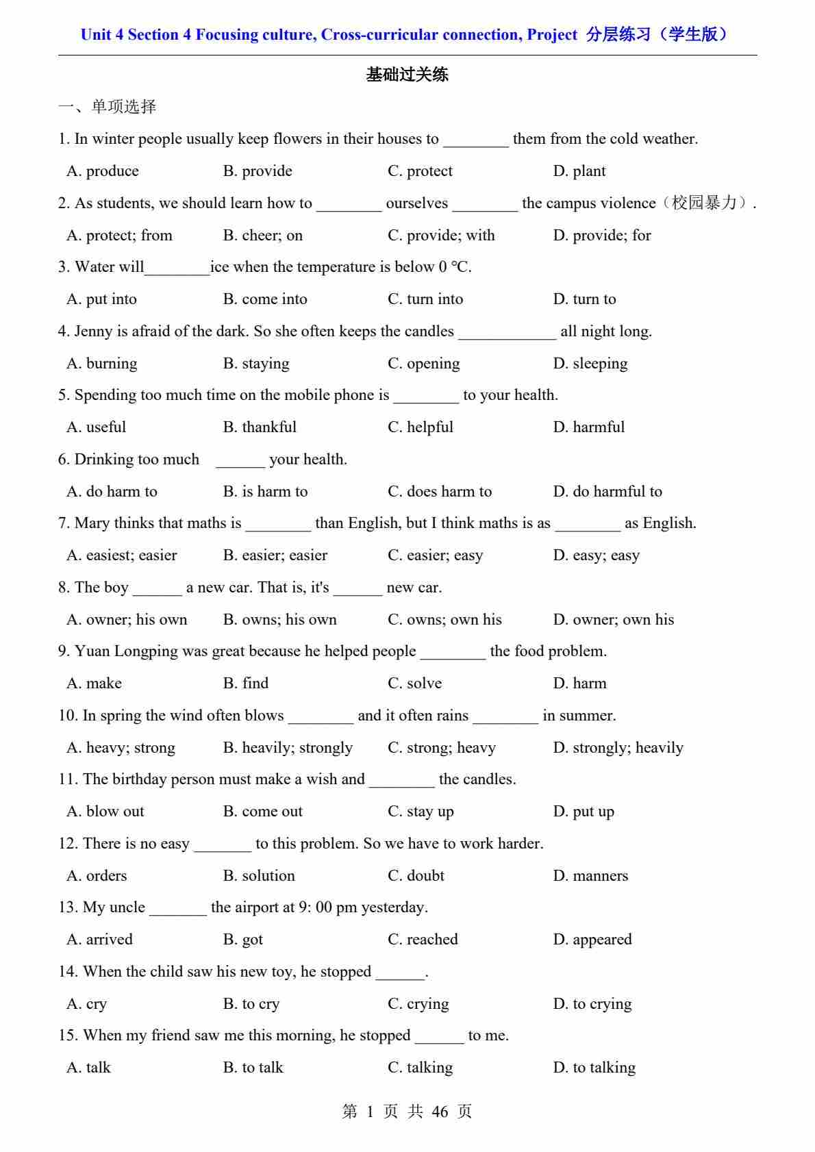 Unit 1 Section 1 Reading(分层练习)沪教版