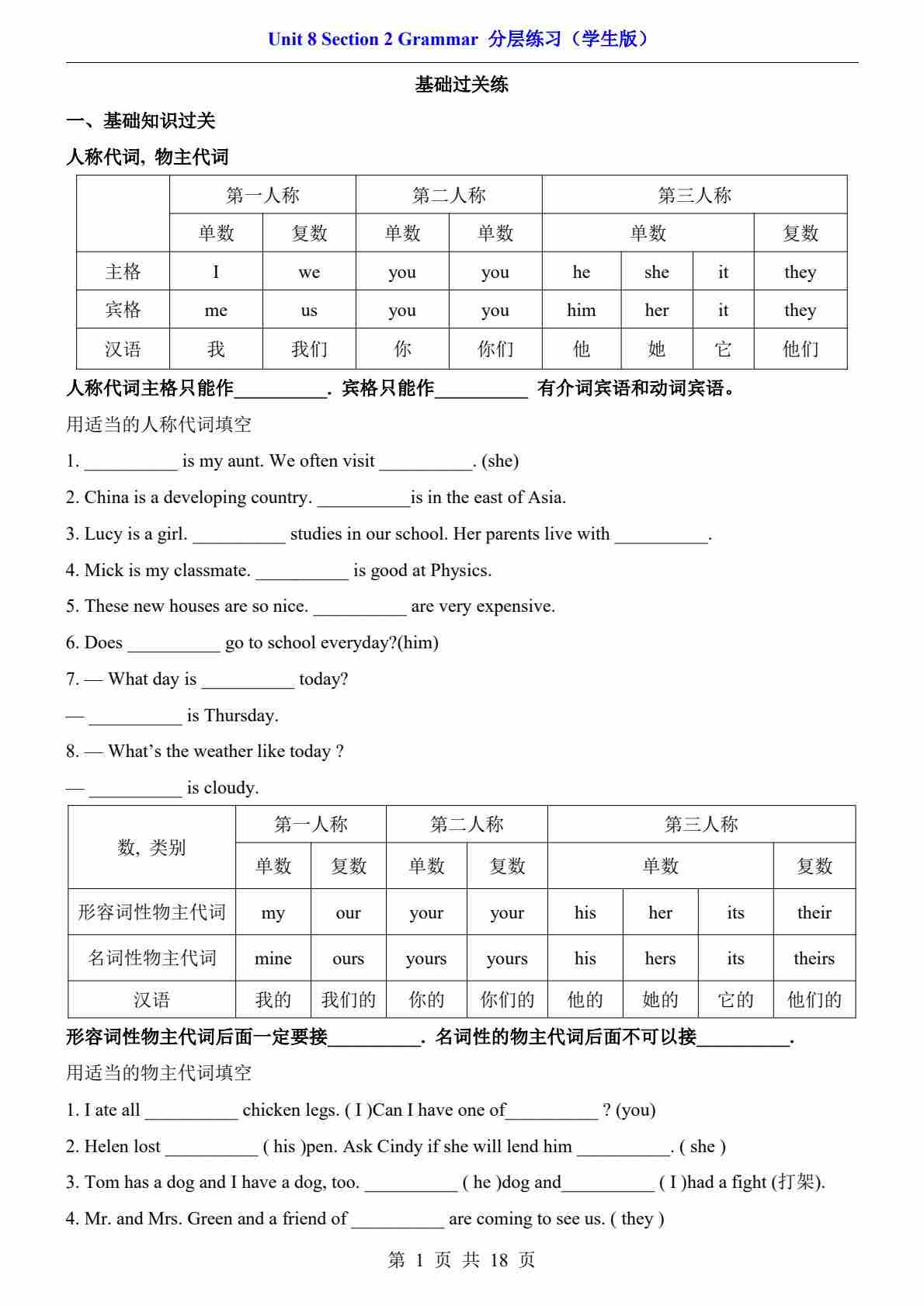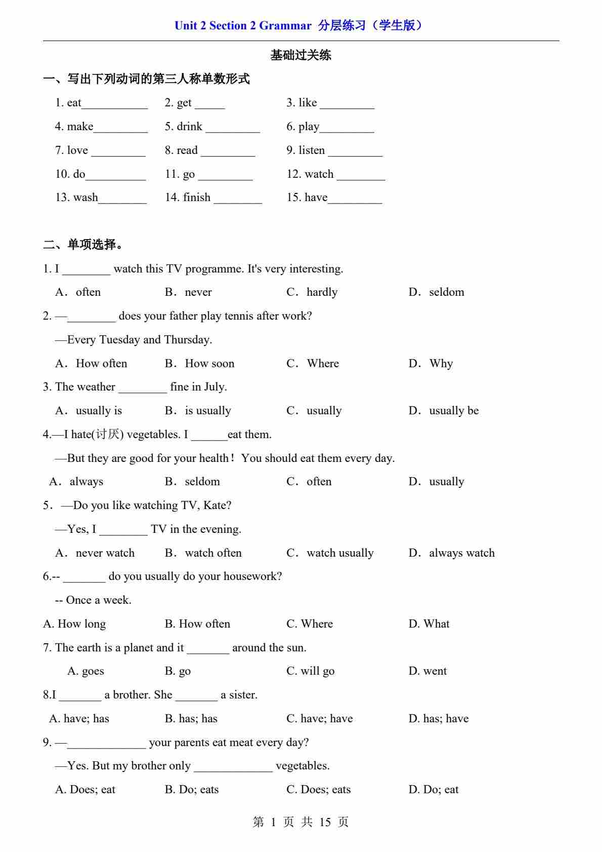 Unit 2 Section 2 Grammar(分层练习)