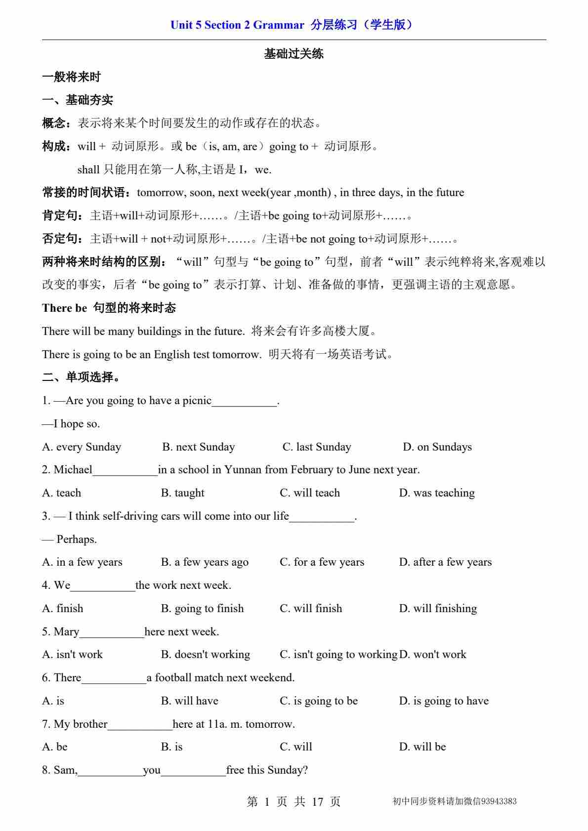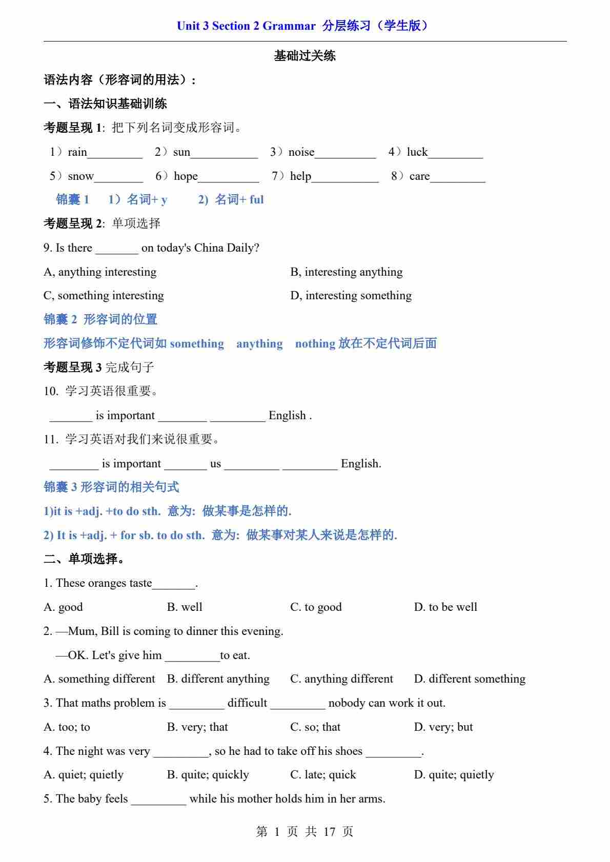 Unit 3 Section 2 Grammar(分层练习)