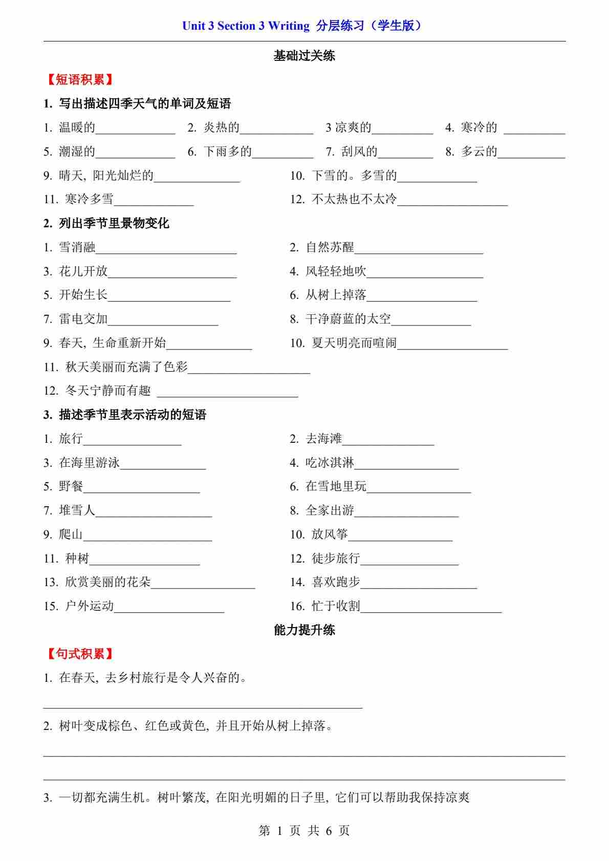 Unit 3 Section 3 Writing(分层练习)