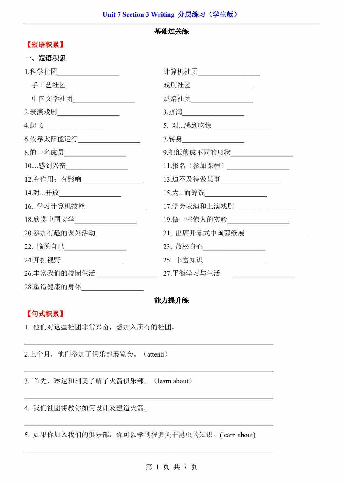 Unit 7 Section 3 Writing(分层练习)