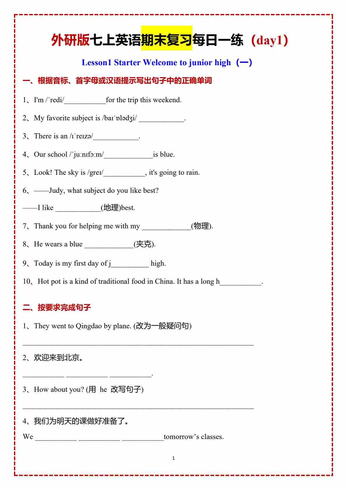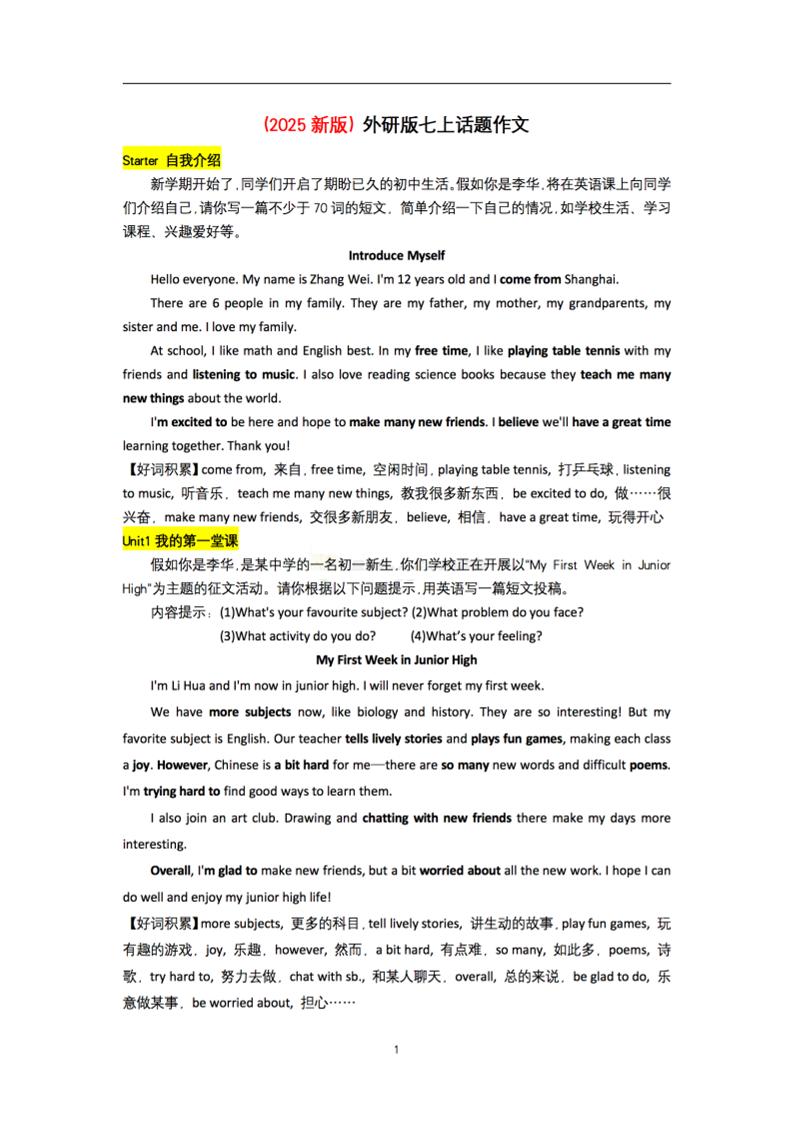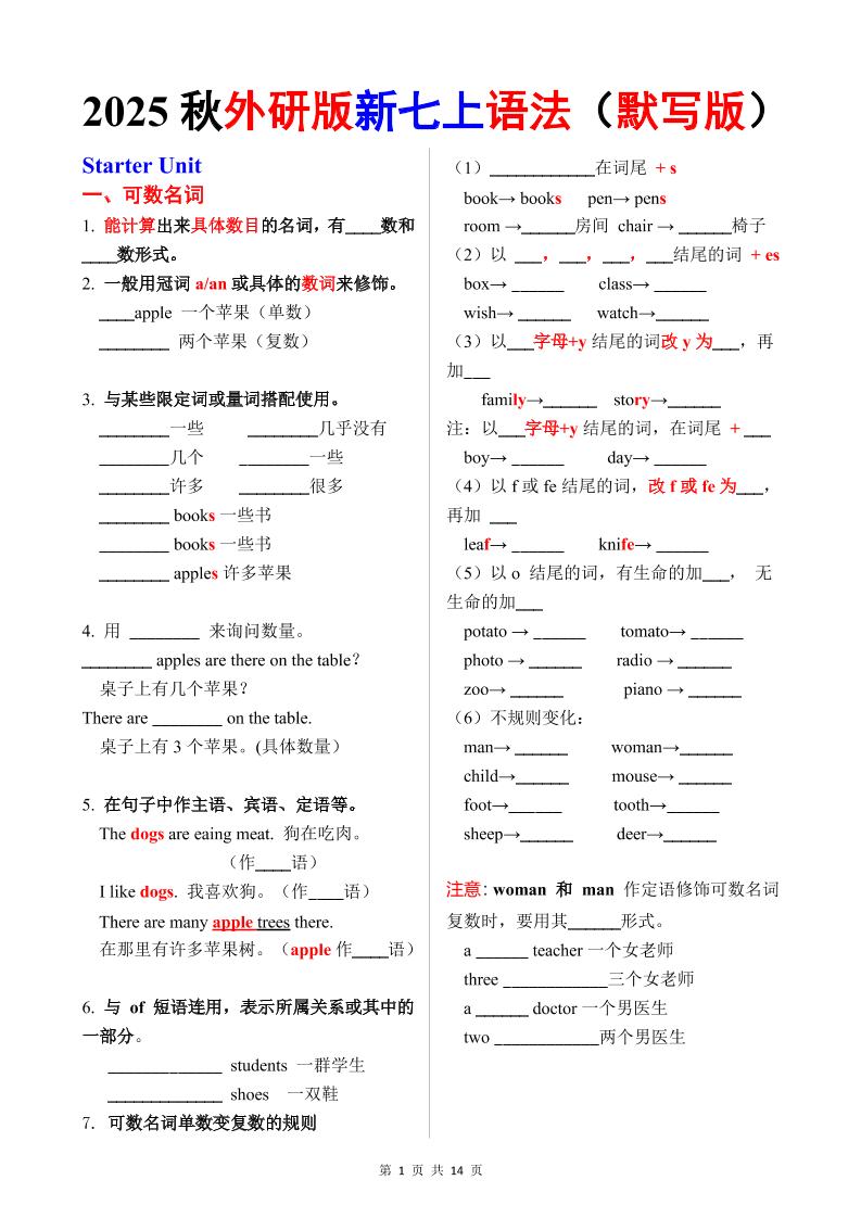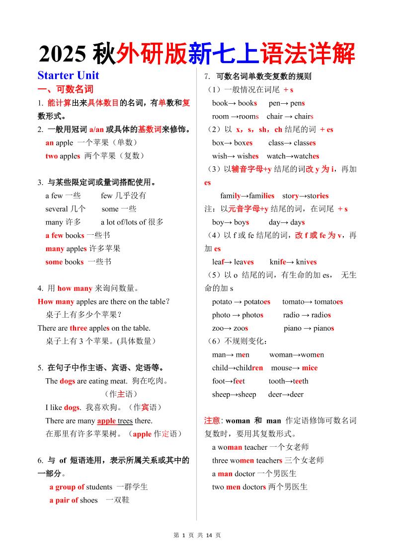 外研版新七上全册语法合集和专练-表格详解版(学生版)(1)