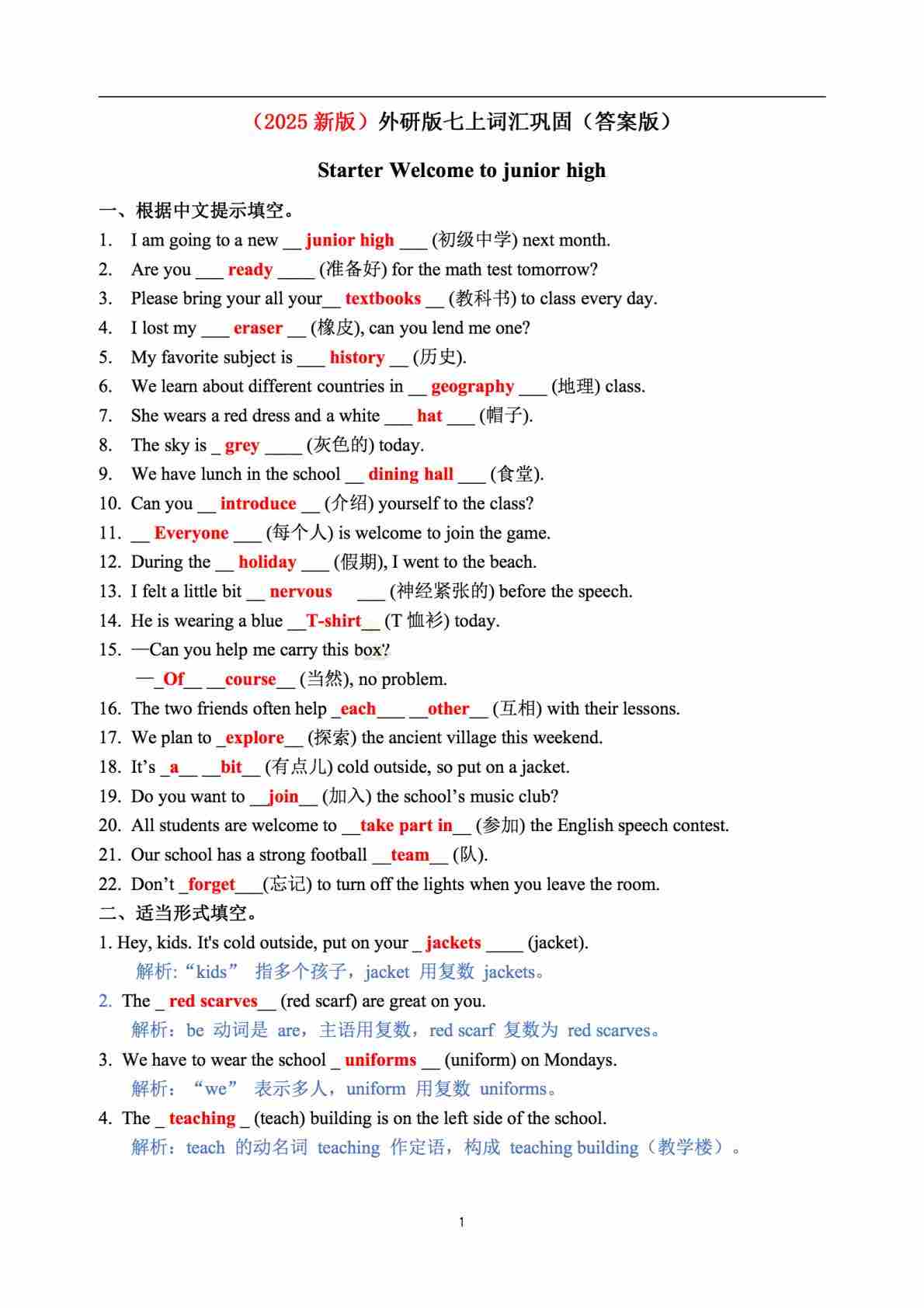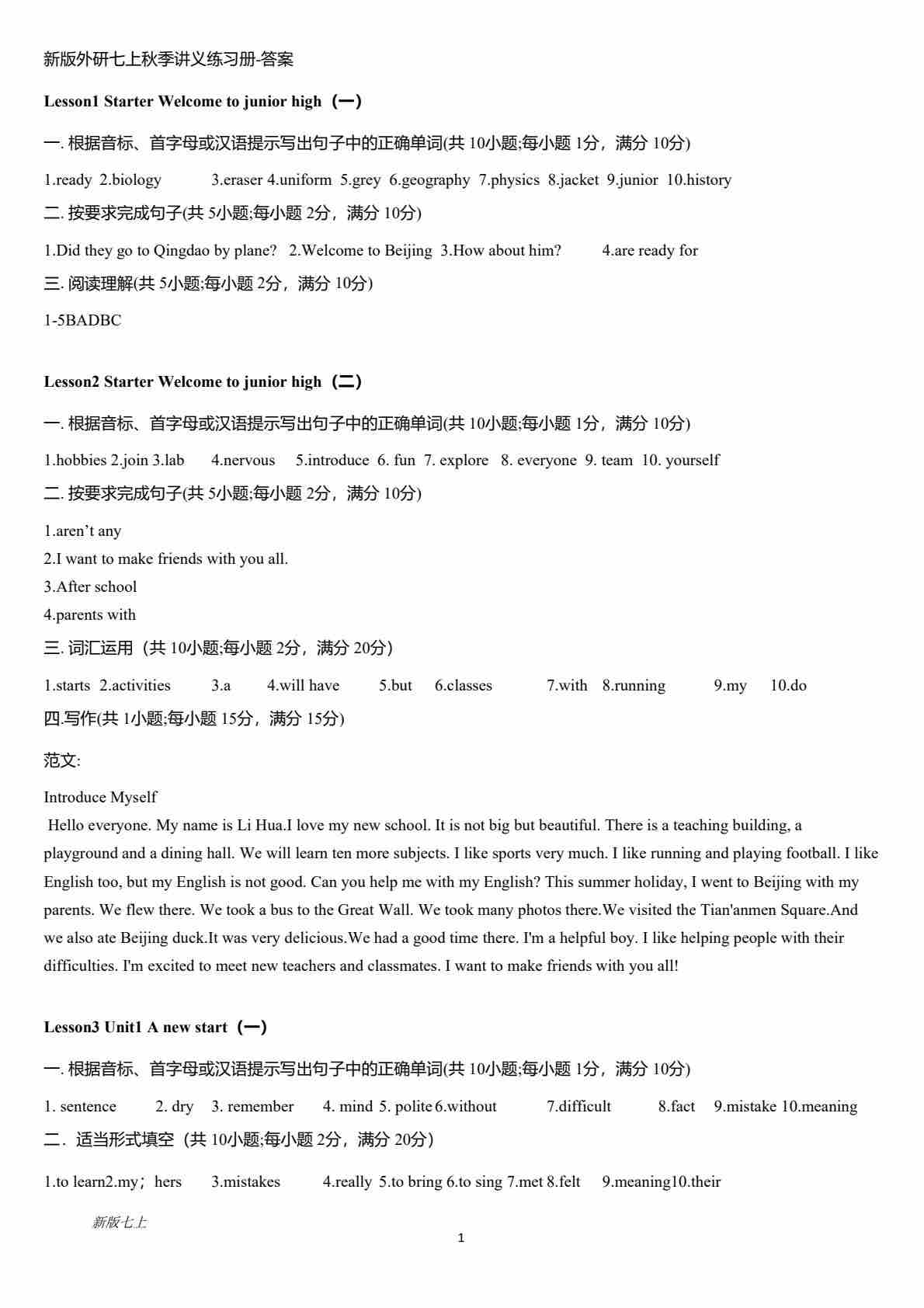 外研版新七上全册语法合集和专练-表格详解版(教师版)(1)