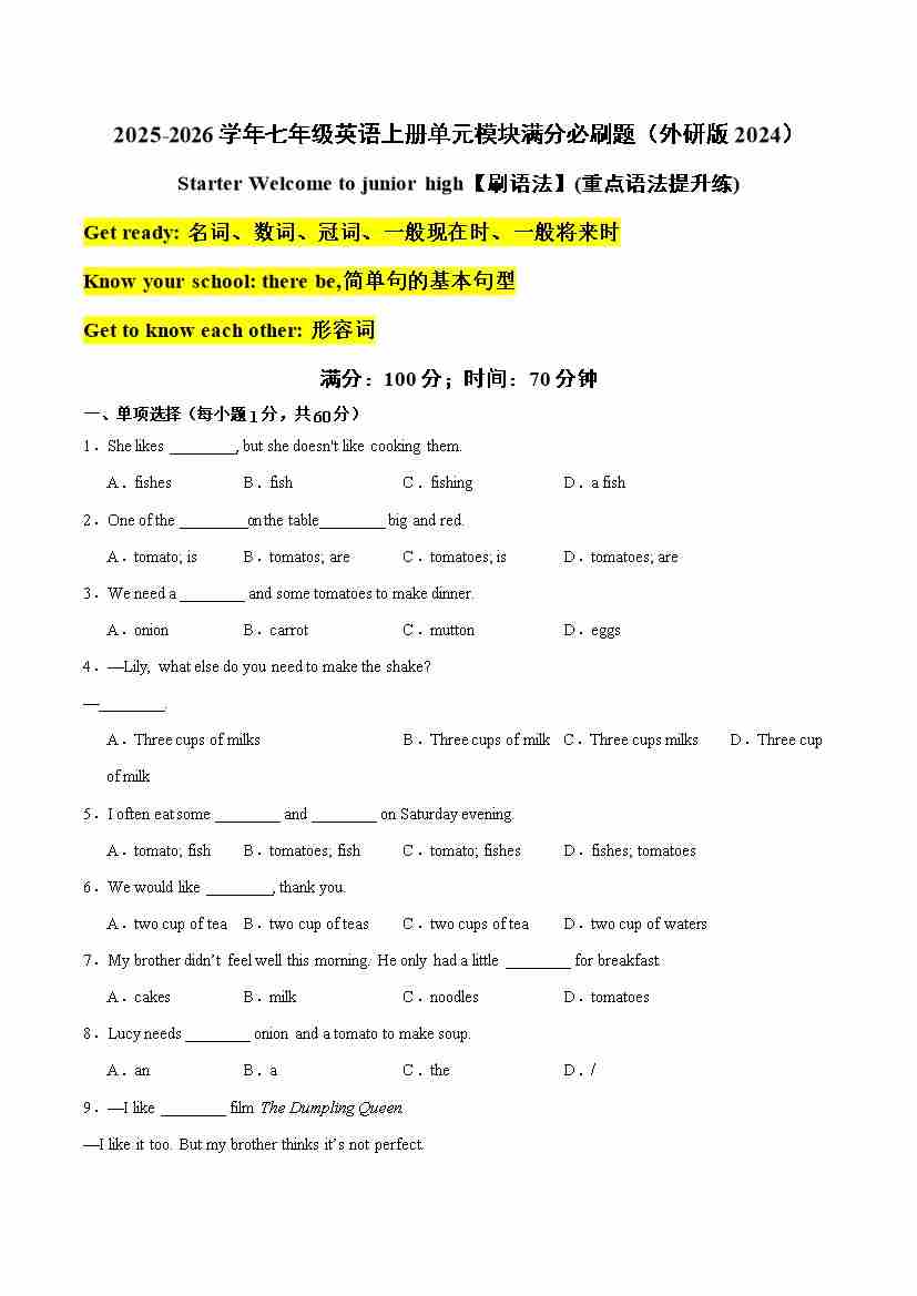 Starter(刷语法)(重点语法提升练)(学生版)单元模块满分必刷题(外研版2024)
