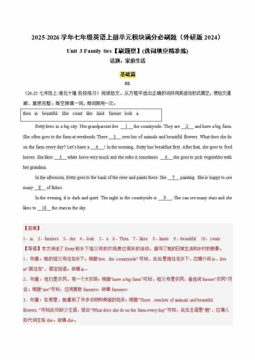 Unit 3(刷题型)(选词填空精准练)(解析版)单元模块满分必刷题(外研版2024)