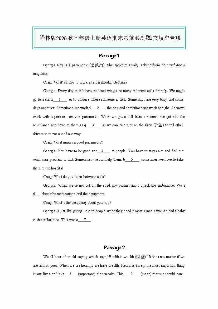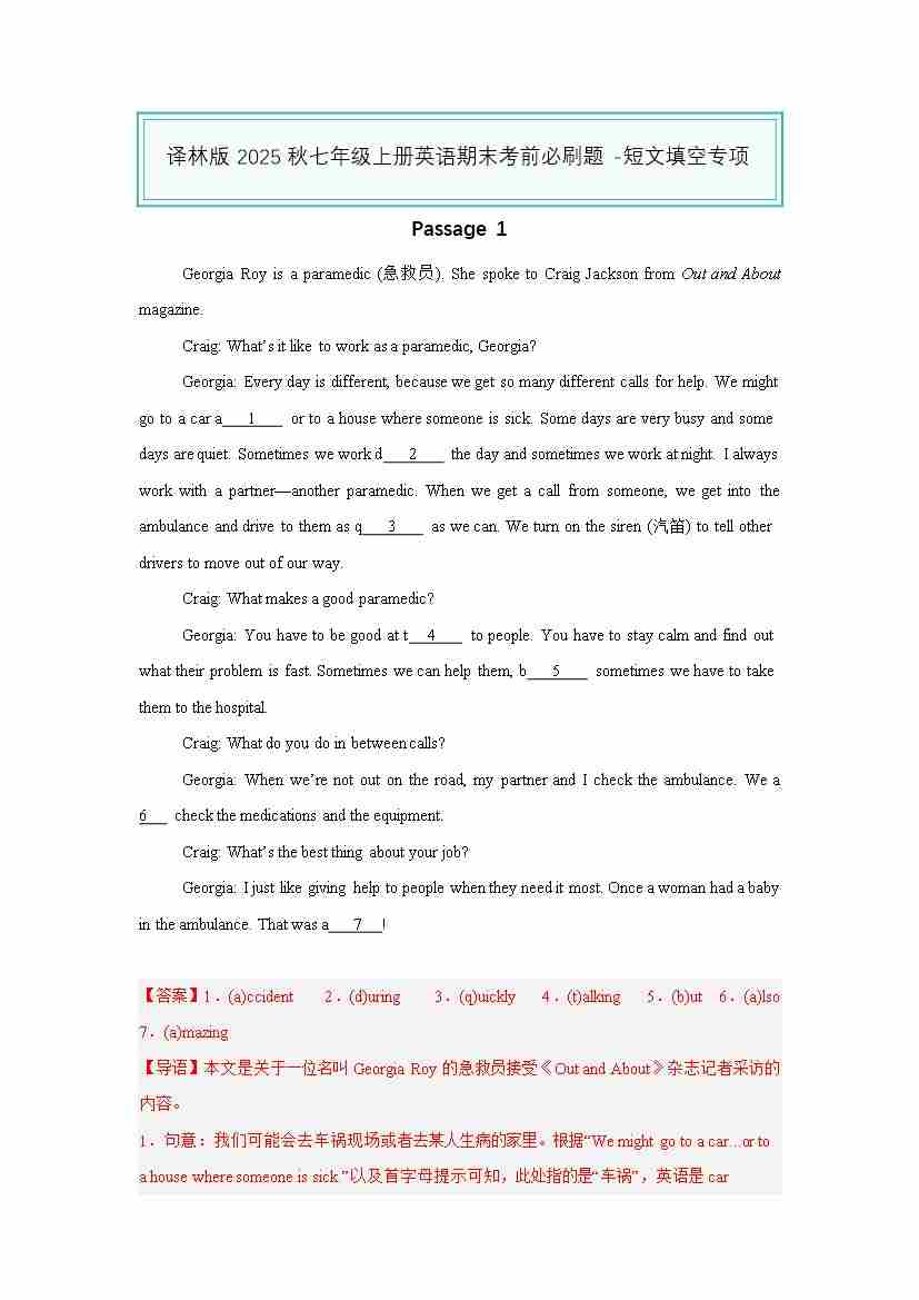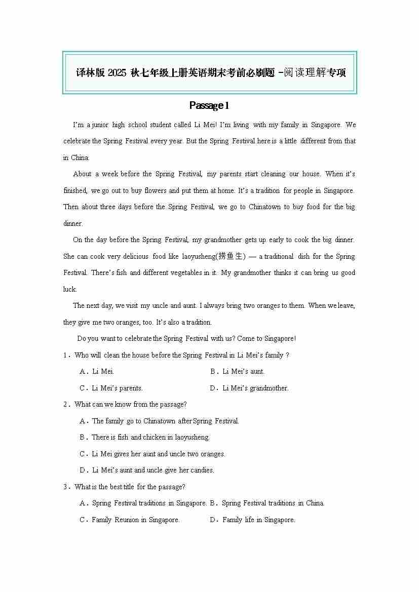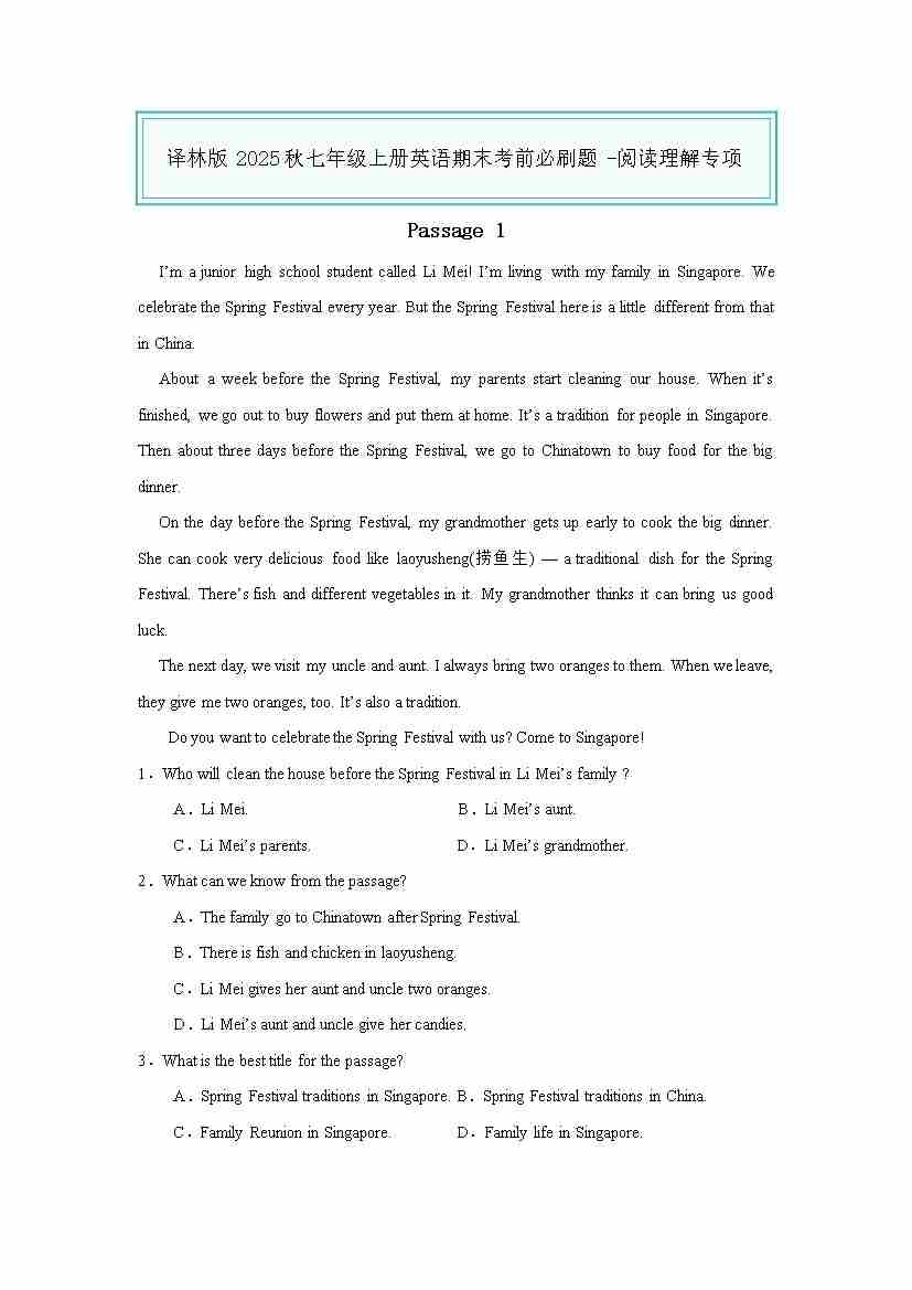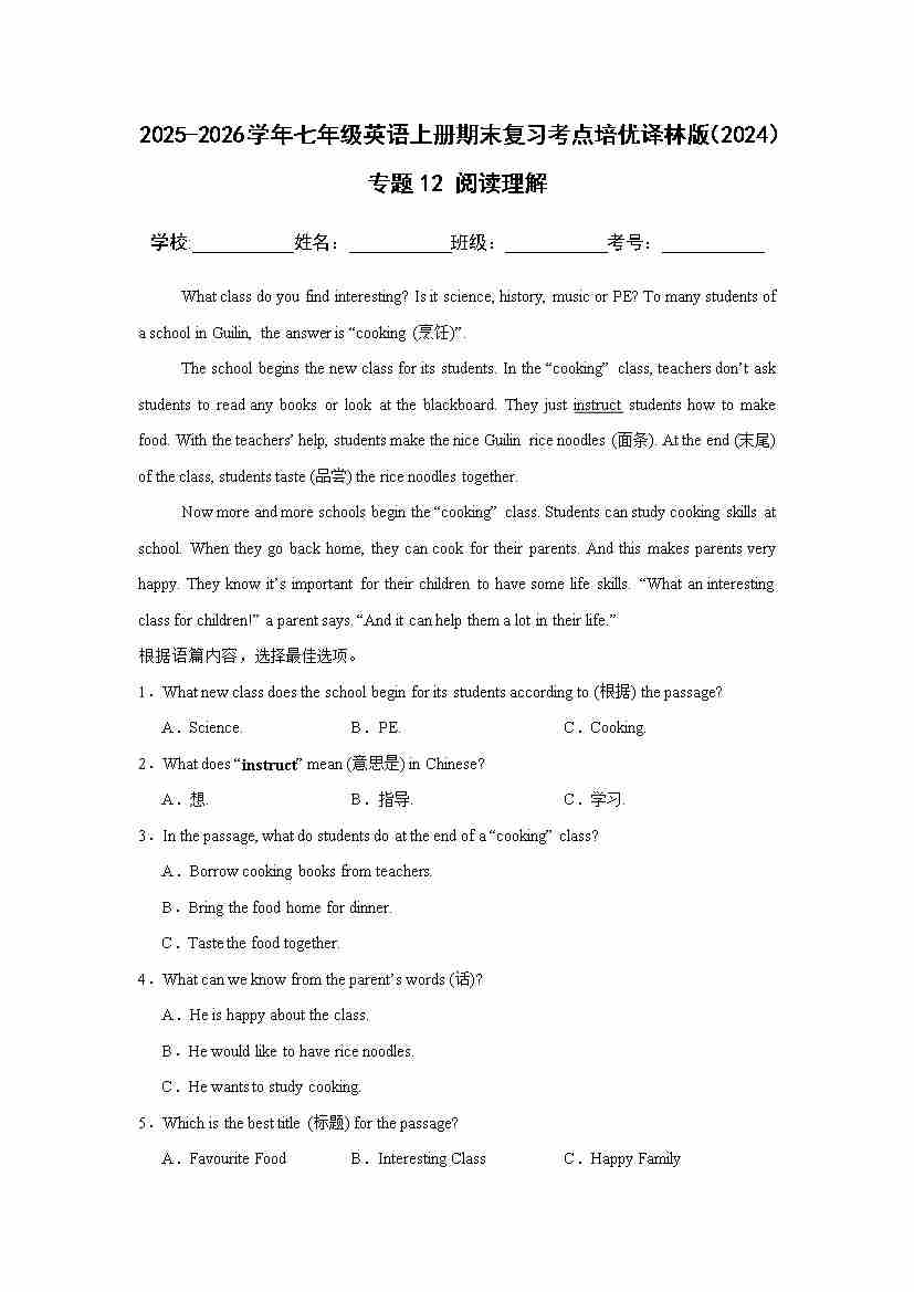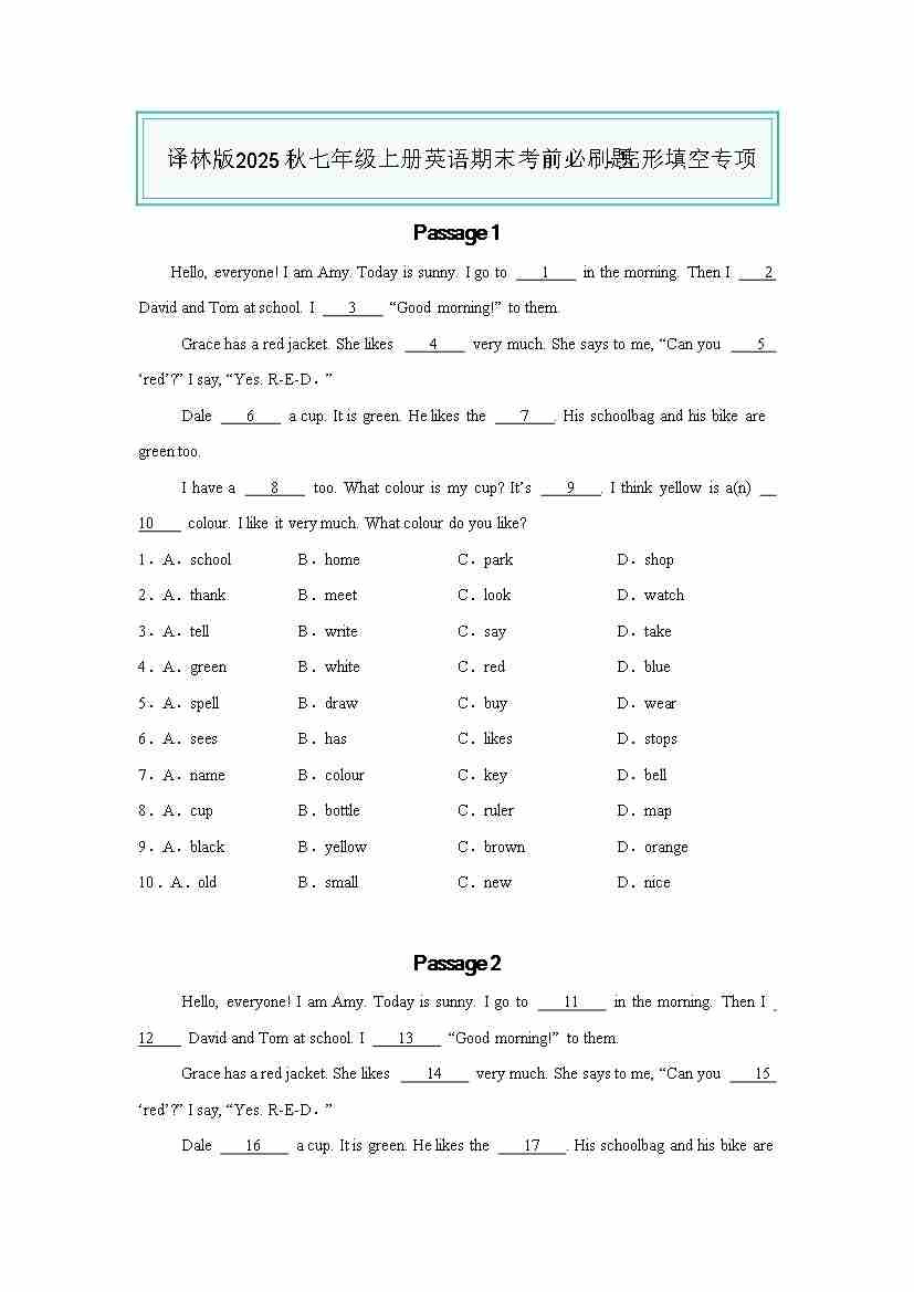 专题05 根据汉语提示补全句子 七上译林英语25秋