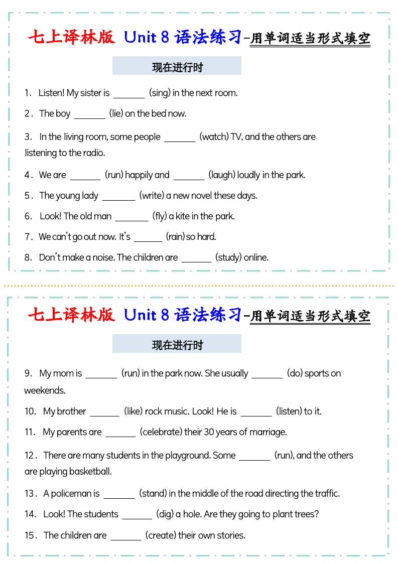 七上译林版Unit 8语法练习-用单词适当形式填空
