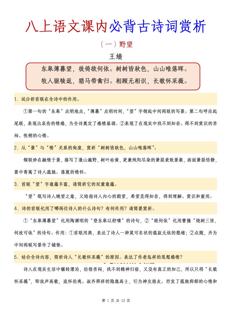 八上预习《红星照耀中国》每日默写小纸条(题目)
