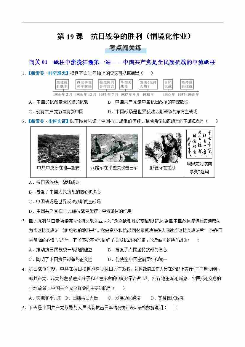 第19课 抗日战争的胜利(情境化作业)(原卷版)
