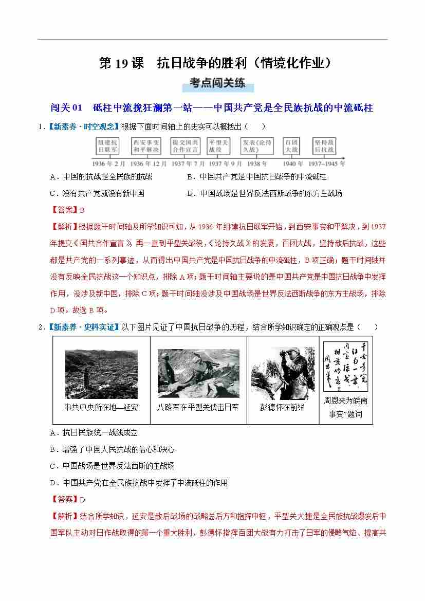 第19课 抗日战争的胜利(情境化作业)(解析版)
