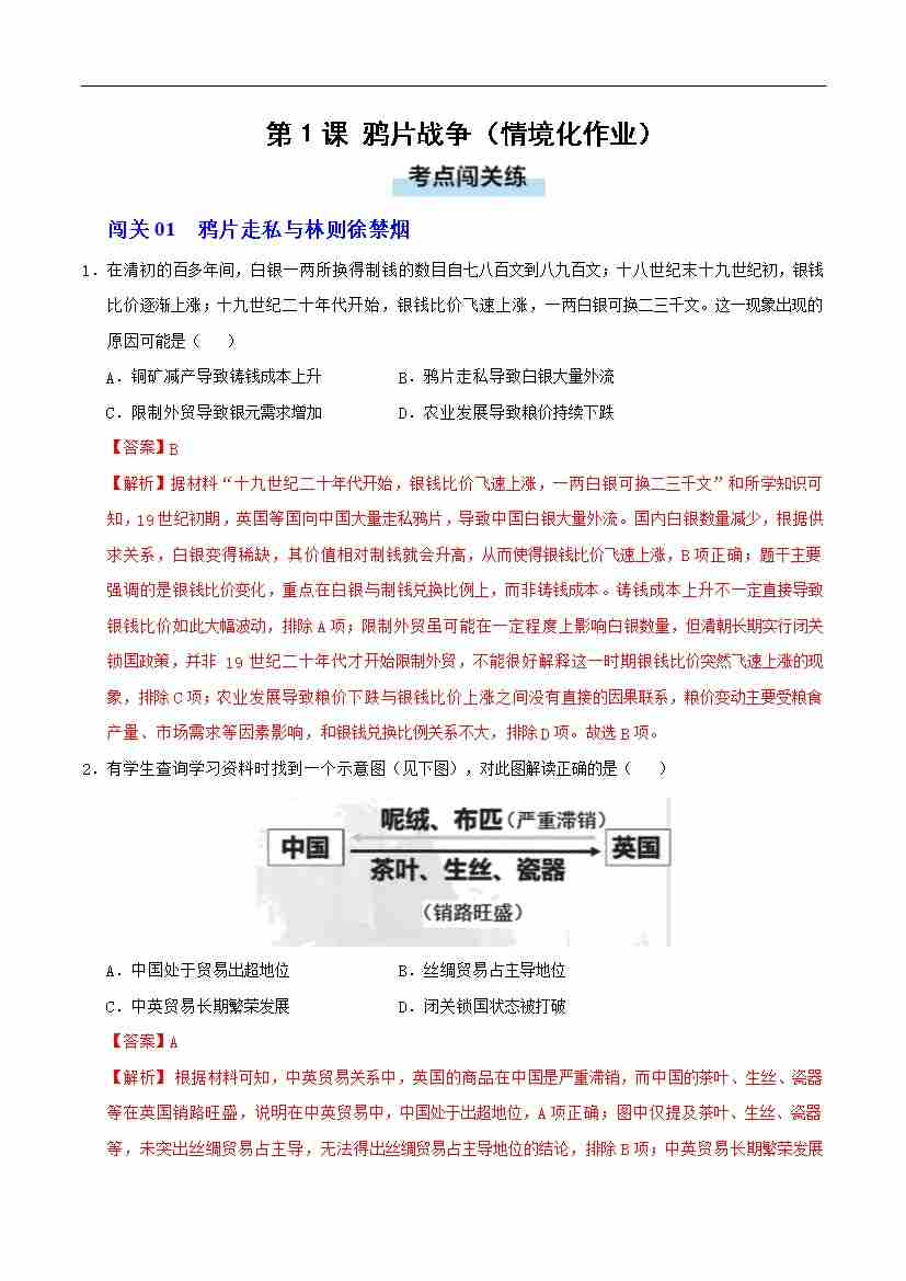 第1课 鸦片战争(情境化作业)(解析版)