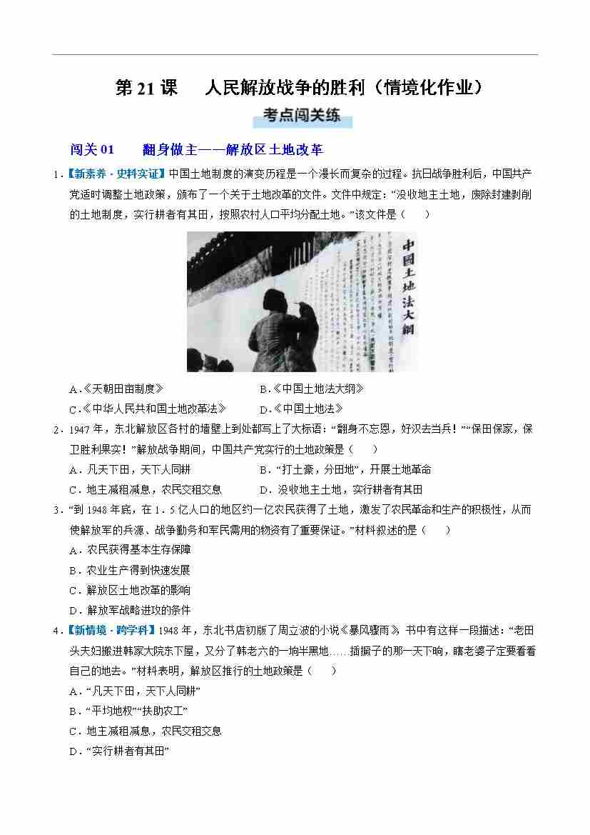 第21课 人民解放战争的胜利(情境化作业)(原卷版)