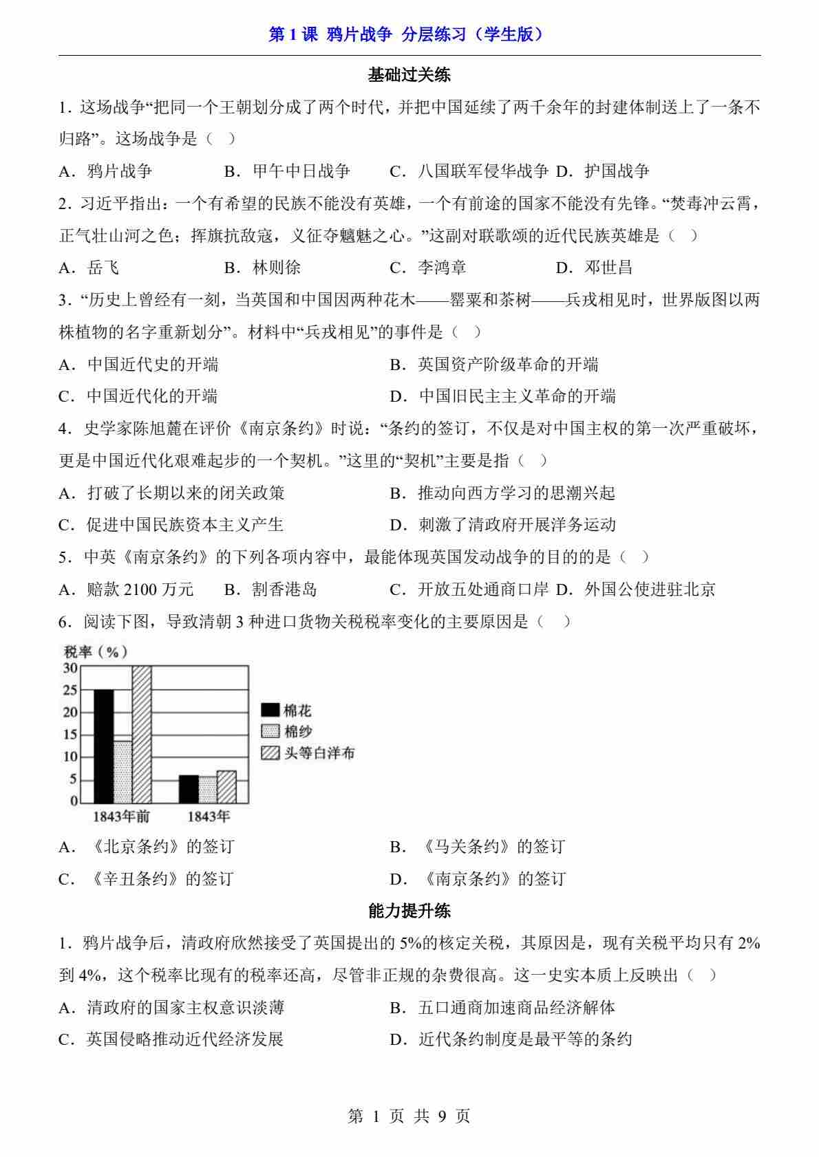第1课 鸦片战争(分层练习)