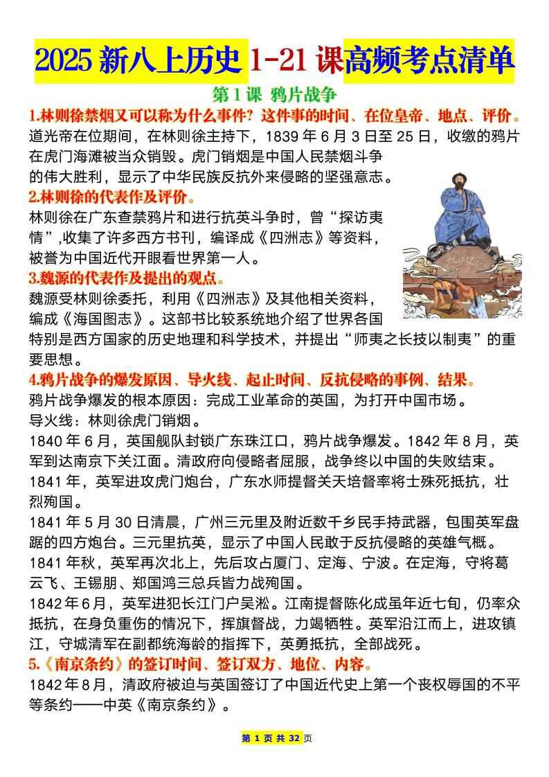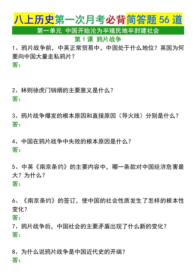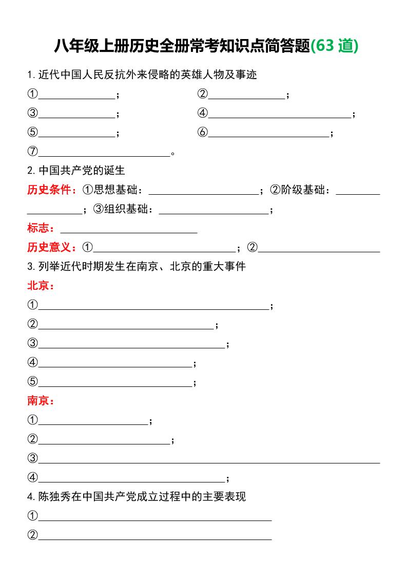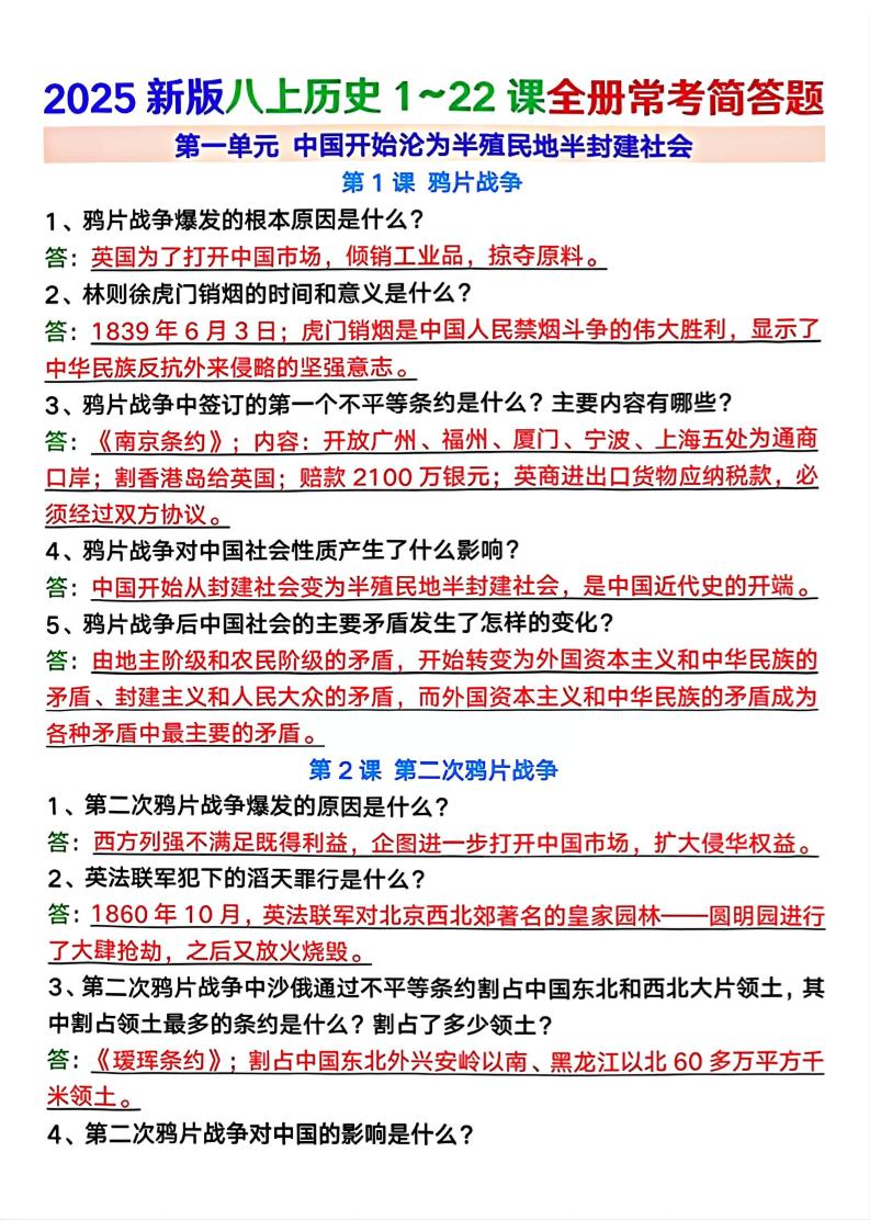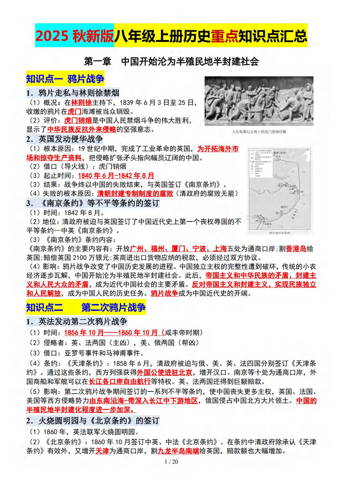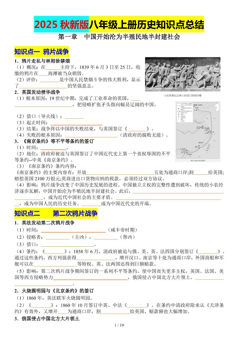 2025秋新版八年级上册历史全册知识点总 背默版88