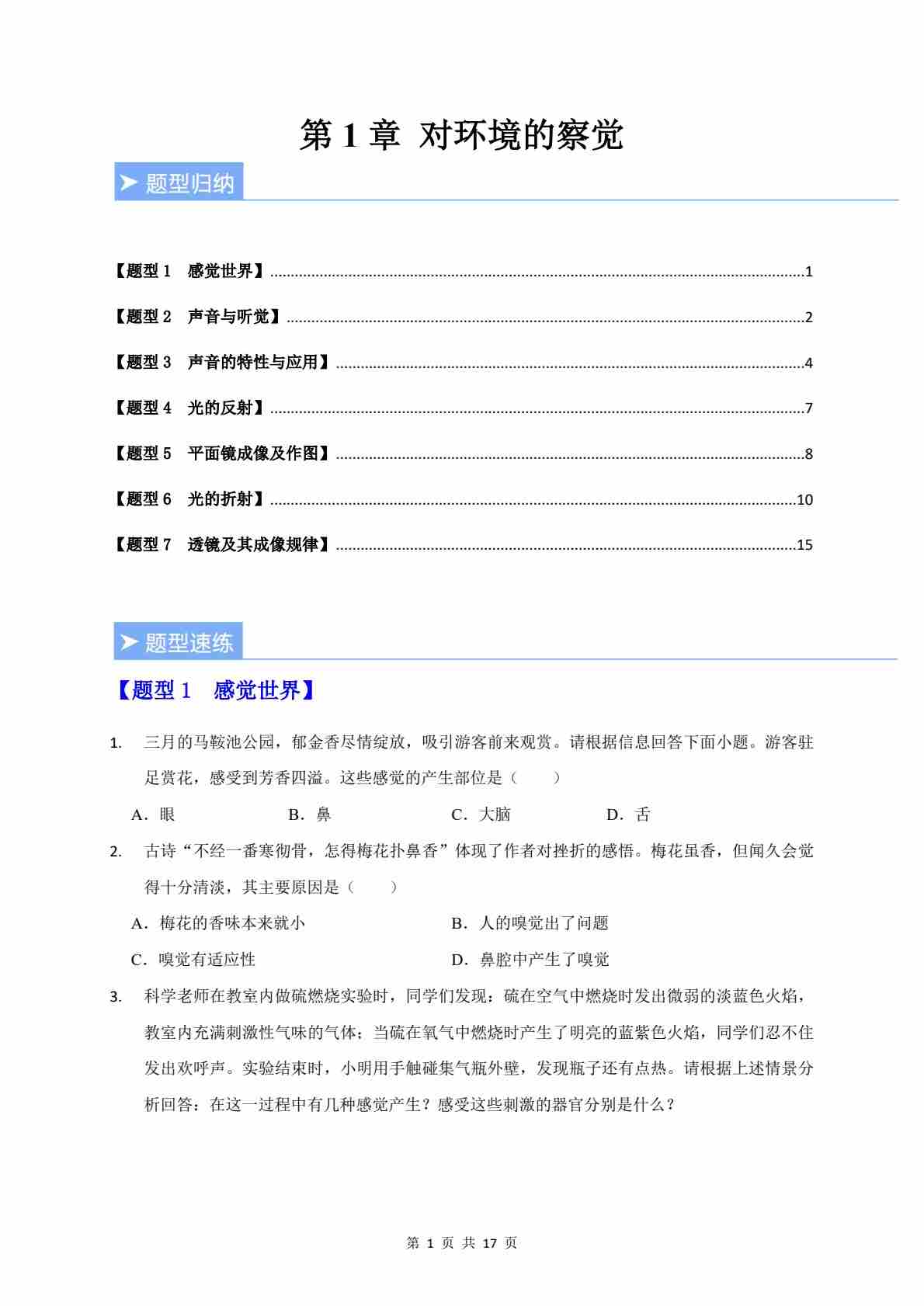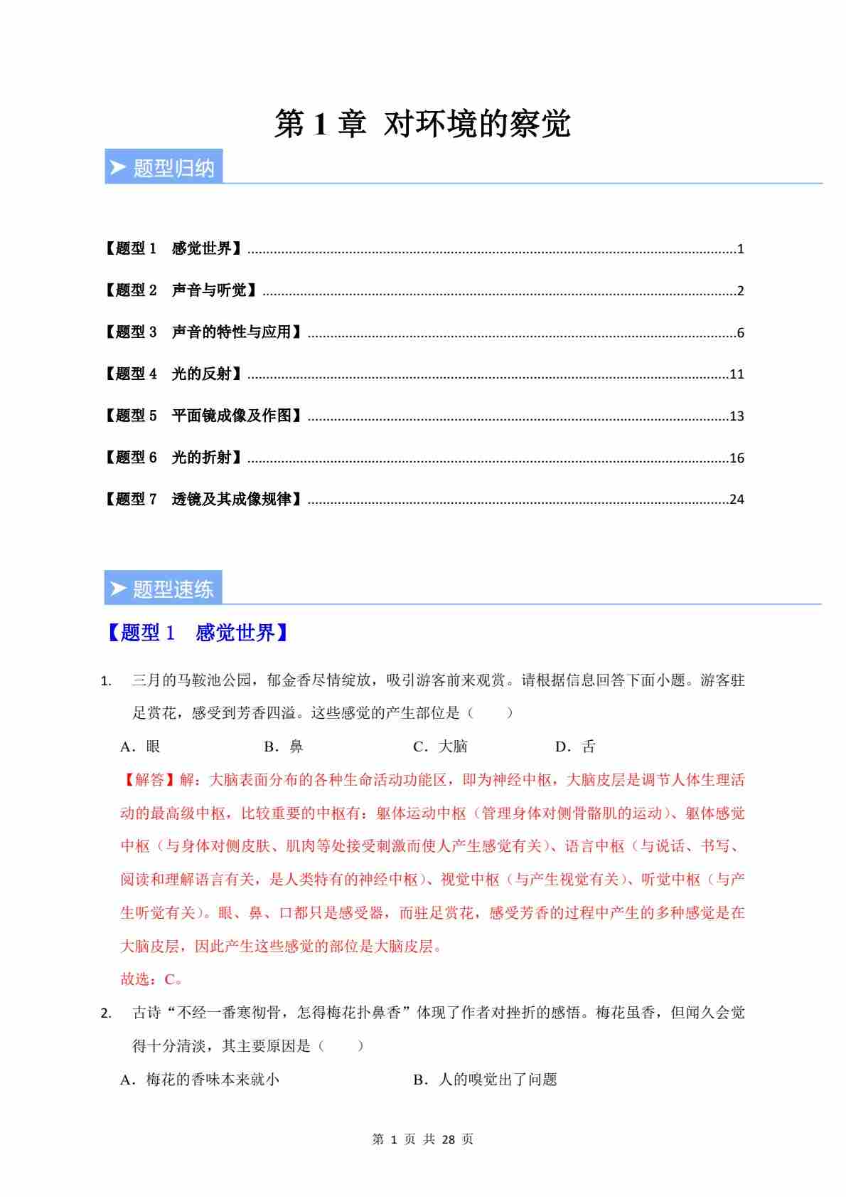 第1节 感觉世界(重难点训练)(解析版)