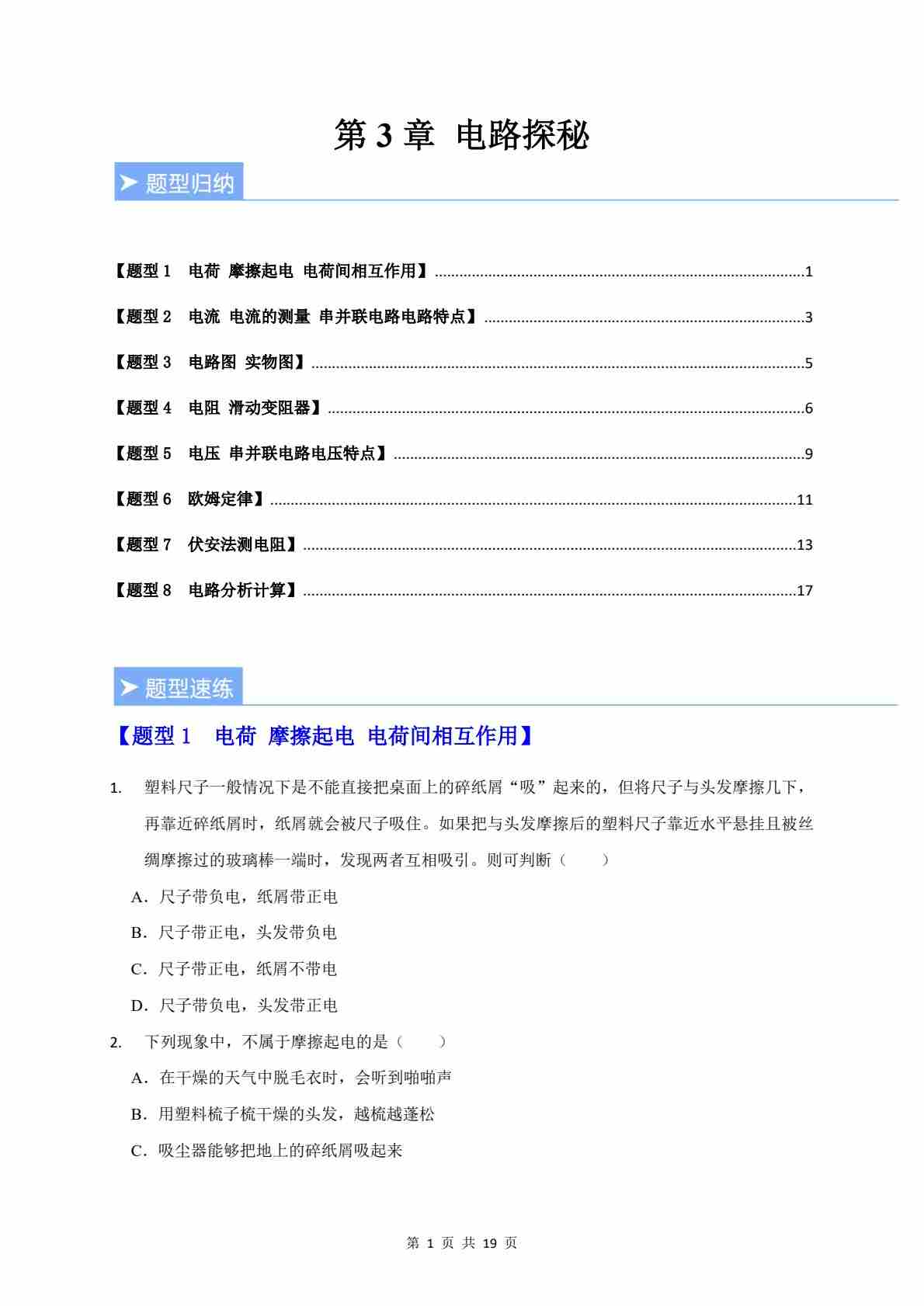第3章 电路探秘(重难点训练)(原卷版)