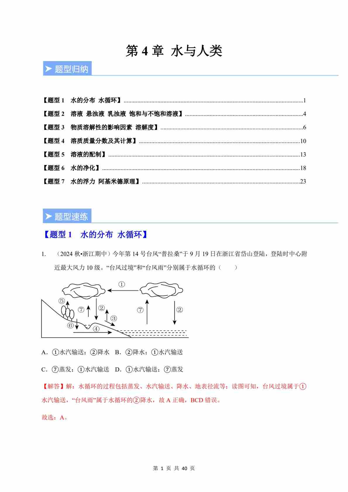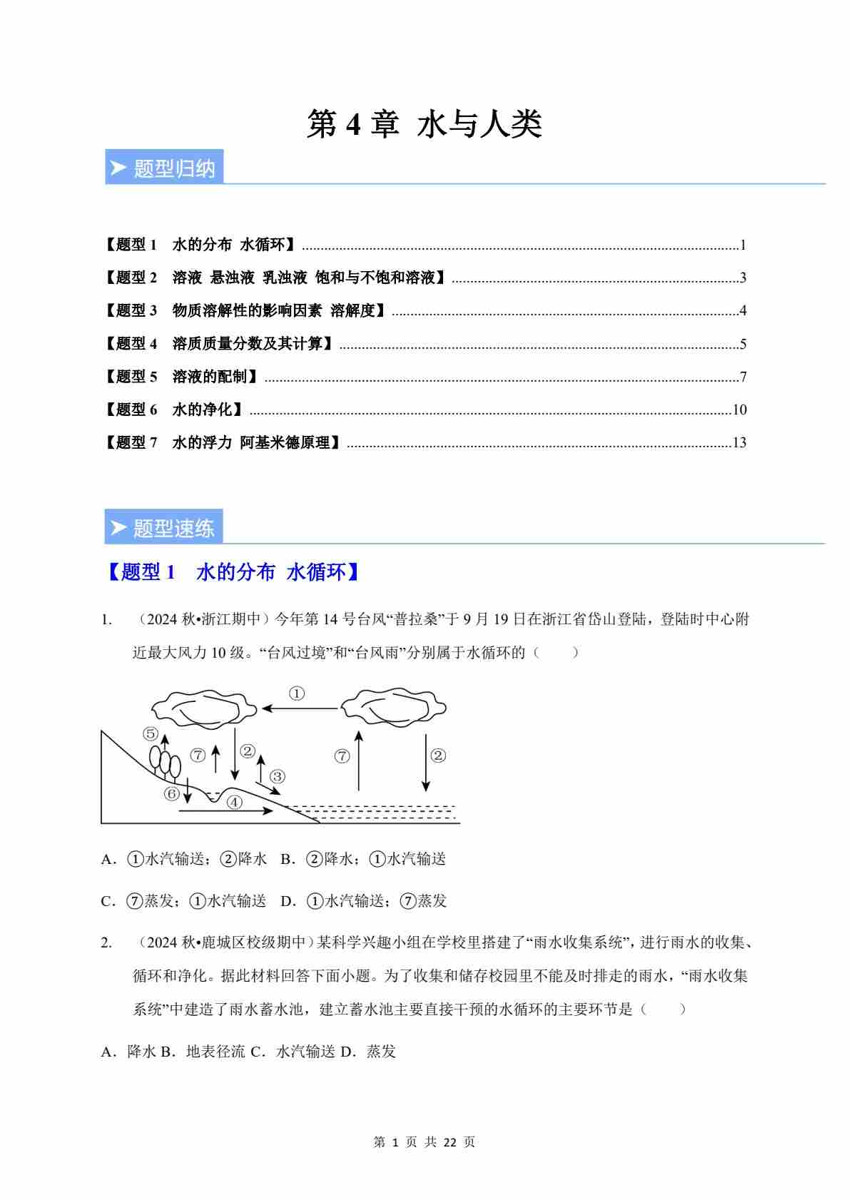 第4章 水与人类(重难点训练)(原卷版)