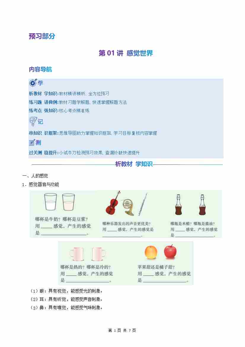第01讲:感觉世界(预习)(原卷版)