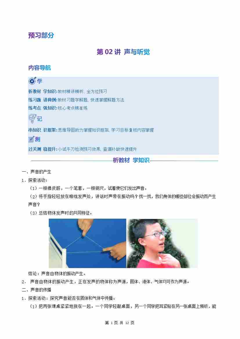 第02讲:声与听觉(预习)(原卷版)