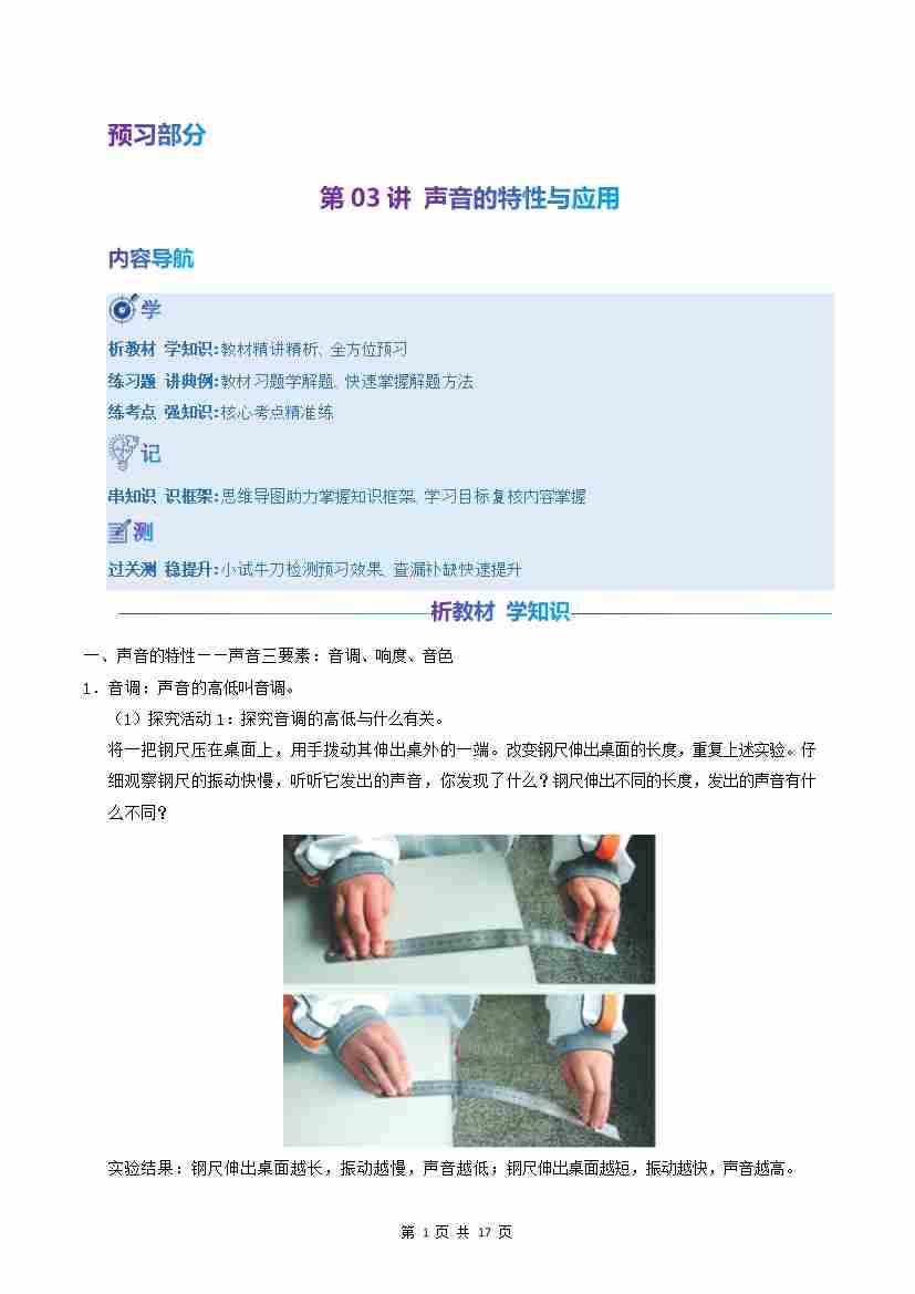 第03讲:声音的特性与应用(预习)(原卷版)