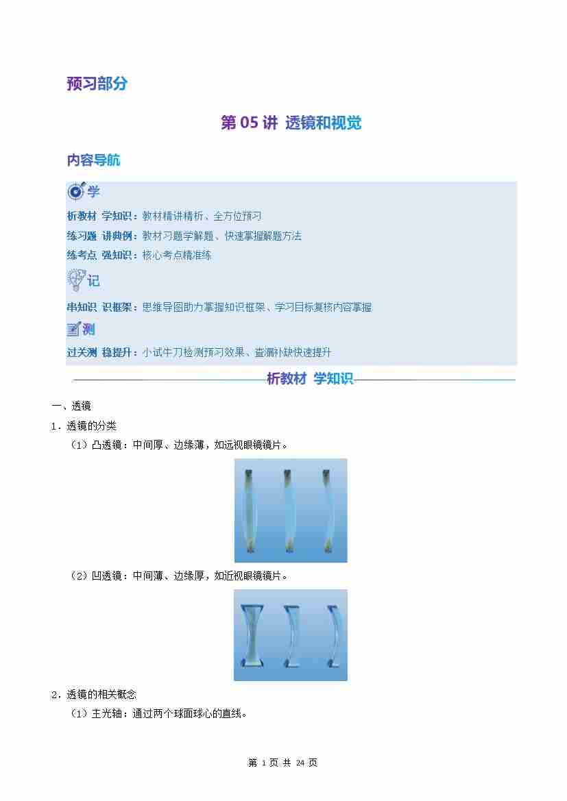 第05讲:透镜和视觉(预习)(原卷版)